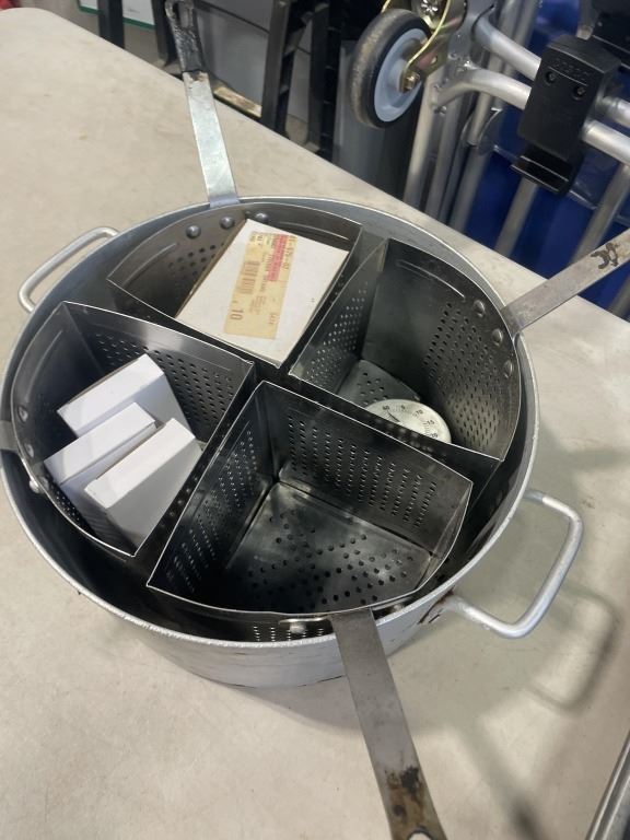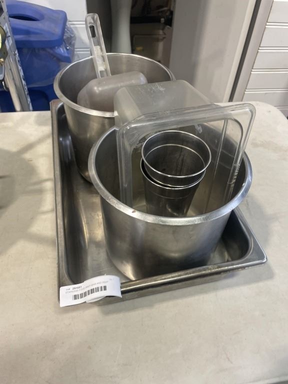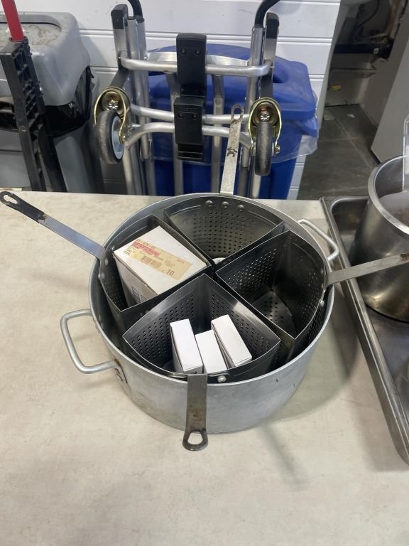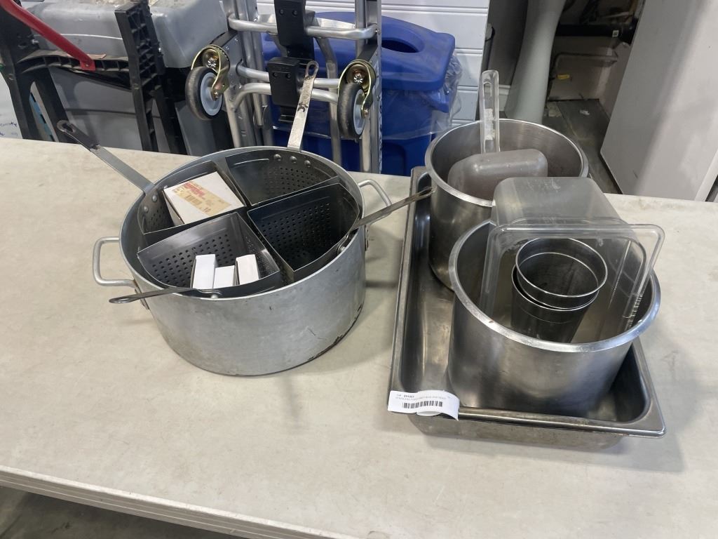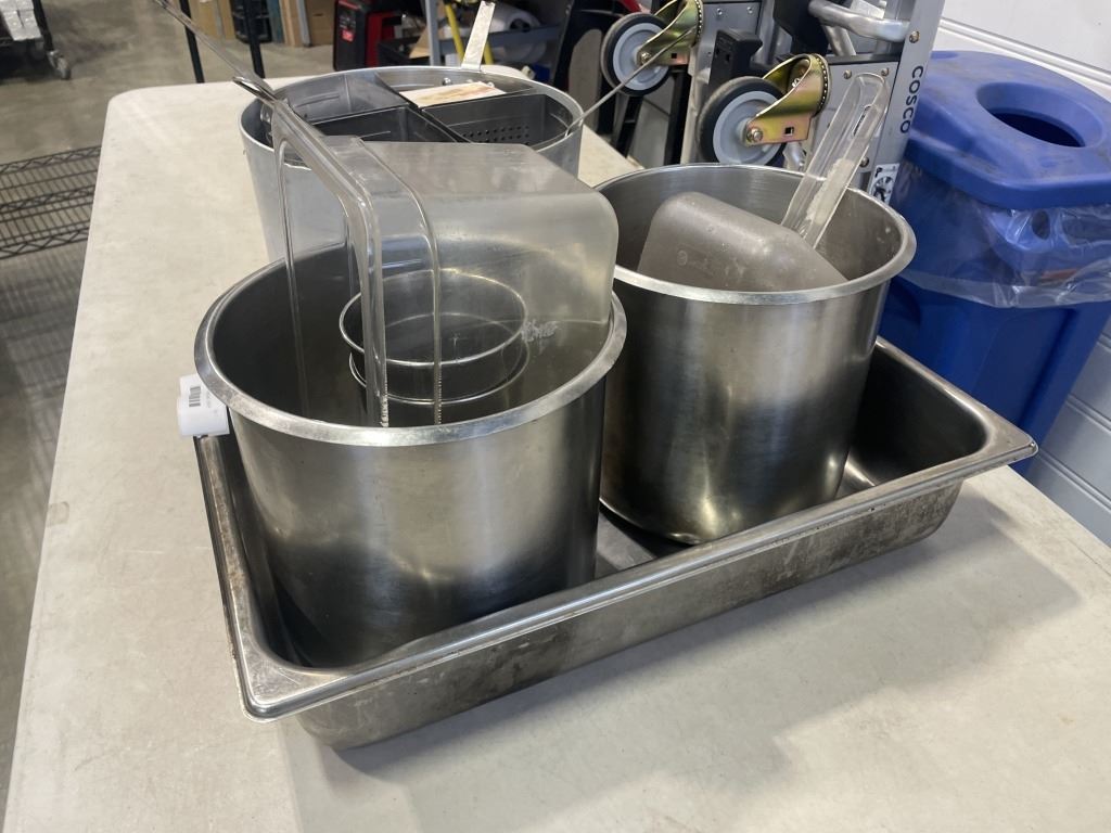 STAINLESS FOOD PREP BINS AND DEEP FRYER POT