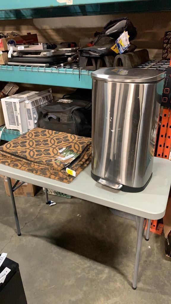 STAINLESS GARBAGE CAN AND 3 OUTDOOR FLOOR MATS