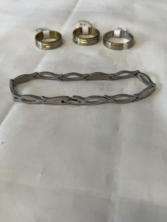 STAINLESS STEEL BRACELET AND 3 RING BANDS