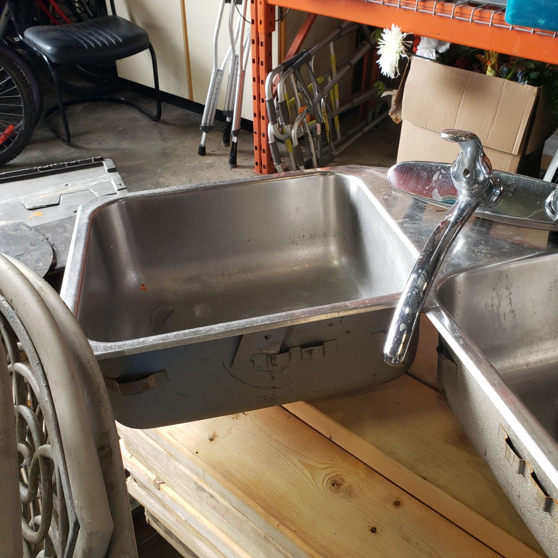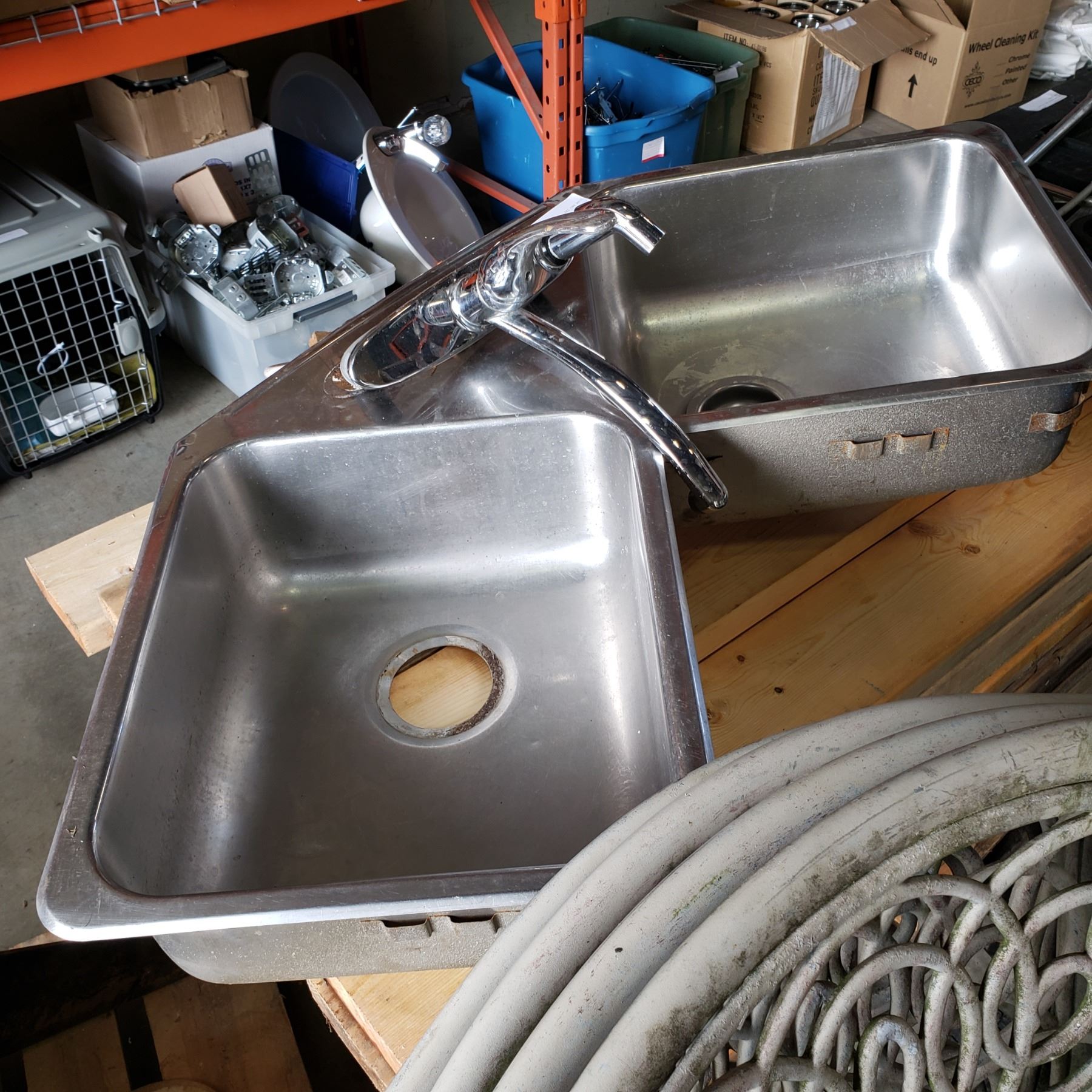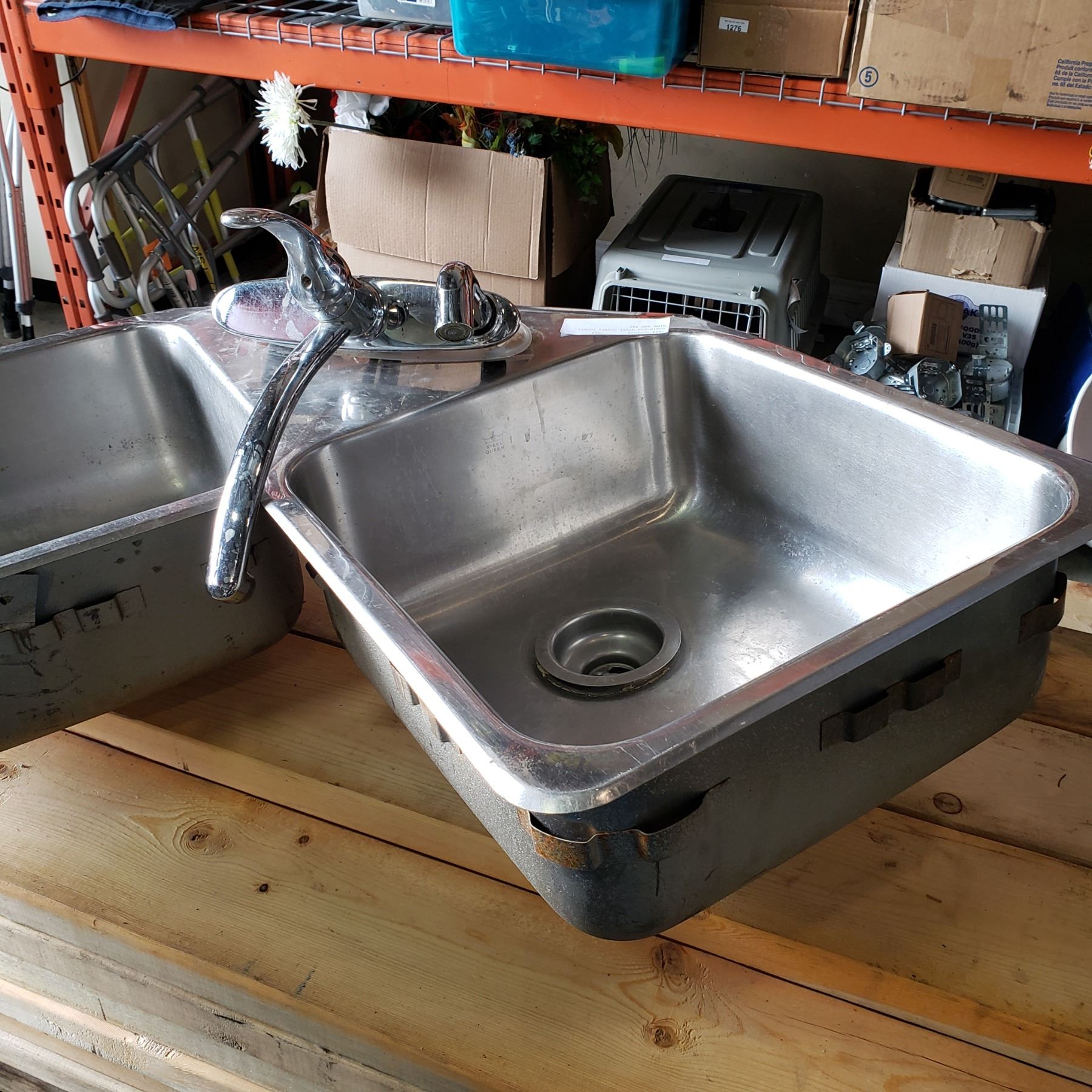 STAINLESS STEEL CORNER DOUBLE SINK AND TAP