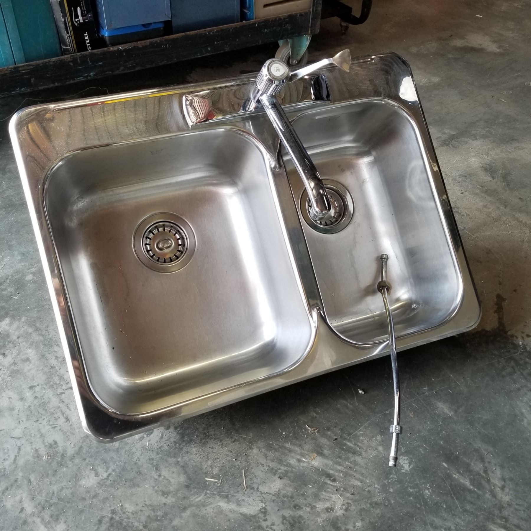 STAINLESS STEEL DOUBLE SINK W/ TAPS