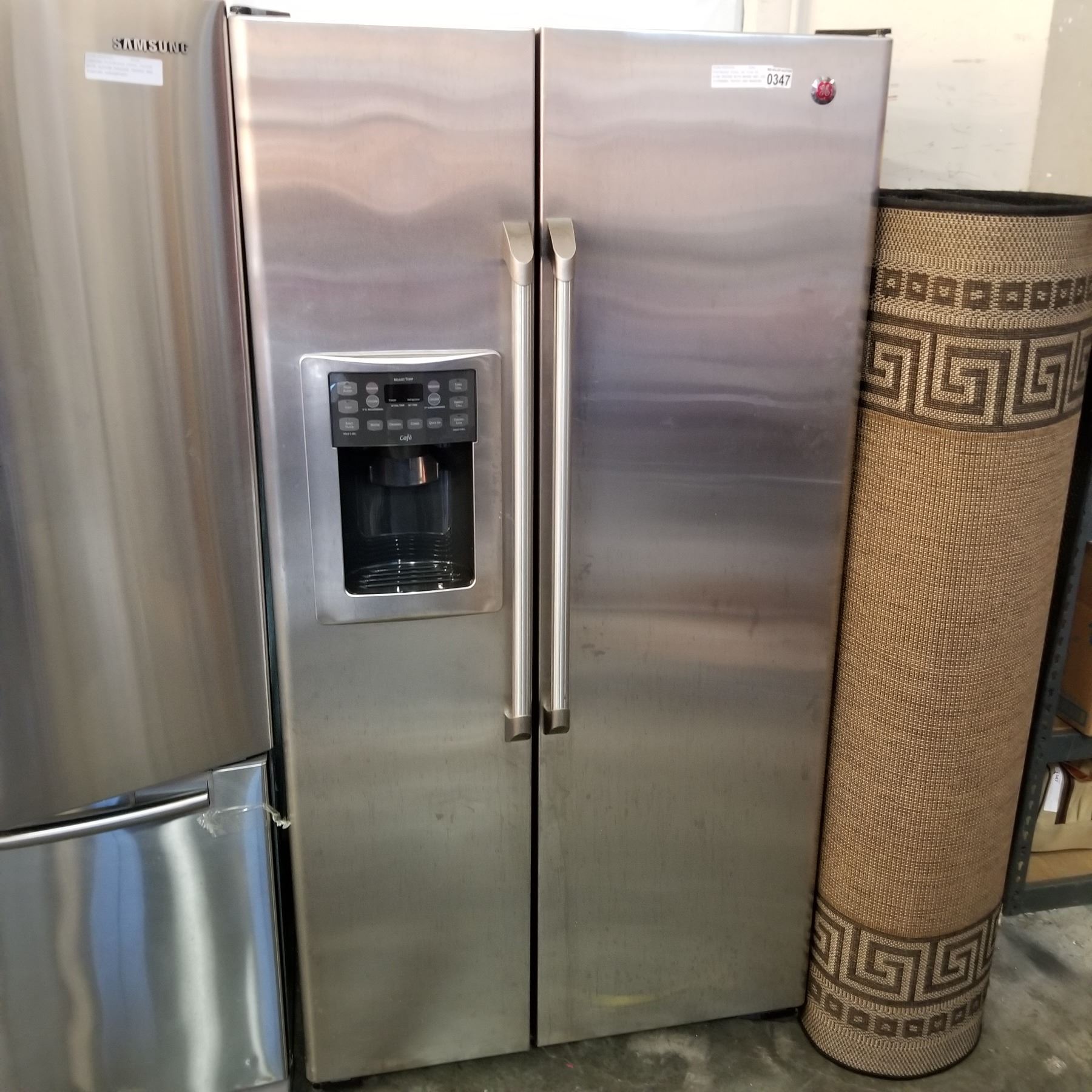 STAINLESS STEEL GE SIDE BY SIDE FRIDGE WITH WATER AND ICE DISPENSER TESTED AND WORKING GUARANTEED