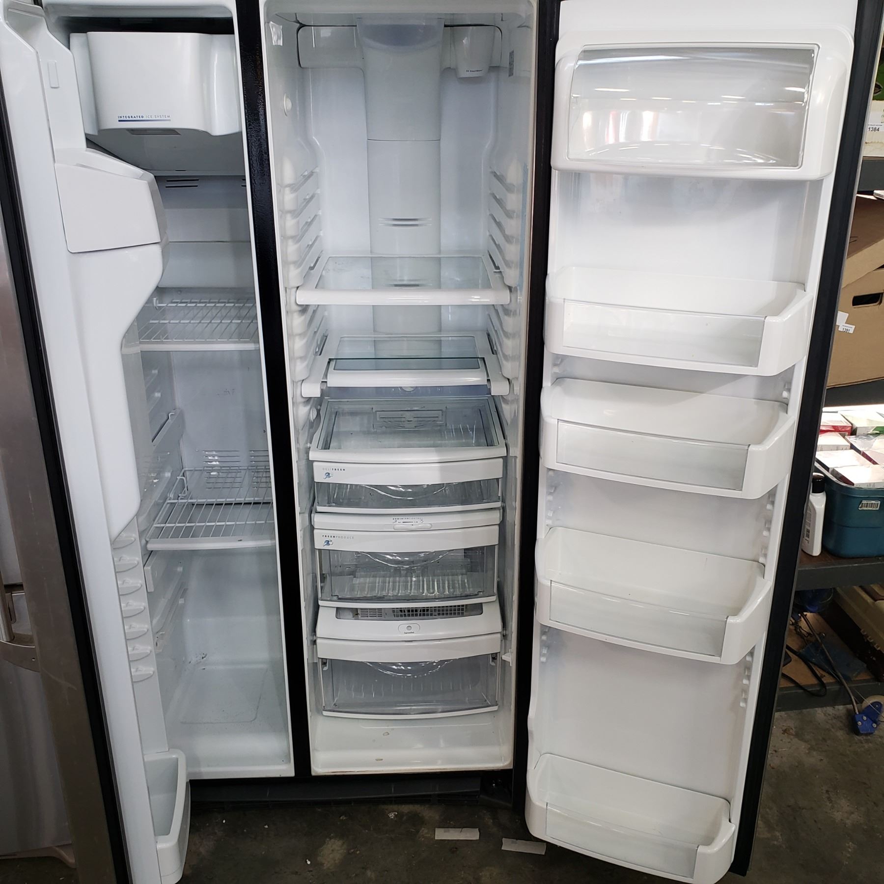 STAINLESS STEEL GE SIDE BY SIDE FRIDGE WITH WATER AND ICE DISPENSER TESTED AND WORKING GUARANTEED