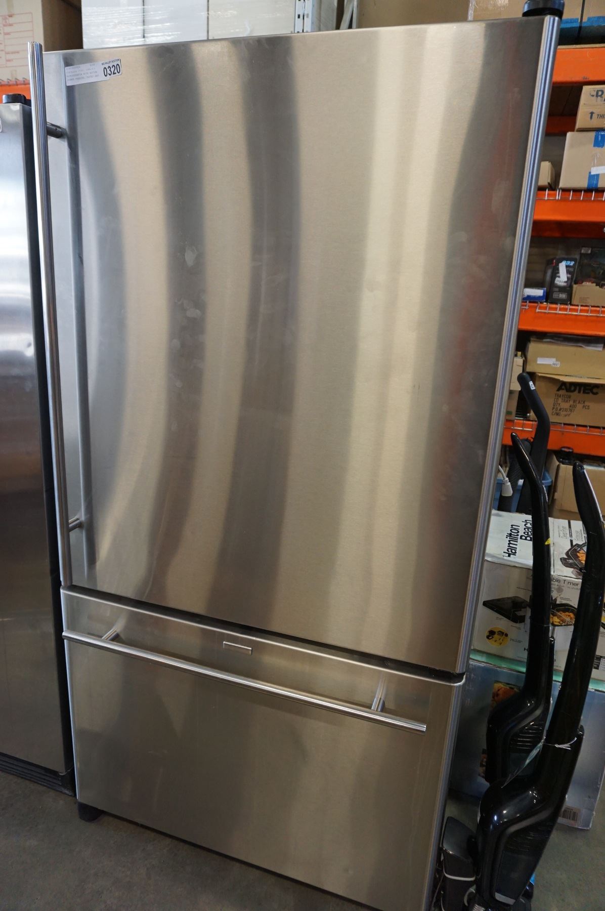STAINLESS STEEL JENN-AIR REFRIDGERATOR WITH BOTTOM DRAWER FREEZER, TESTED AND WORKING GUARANTEED