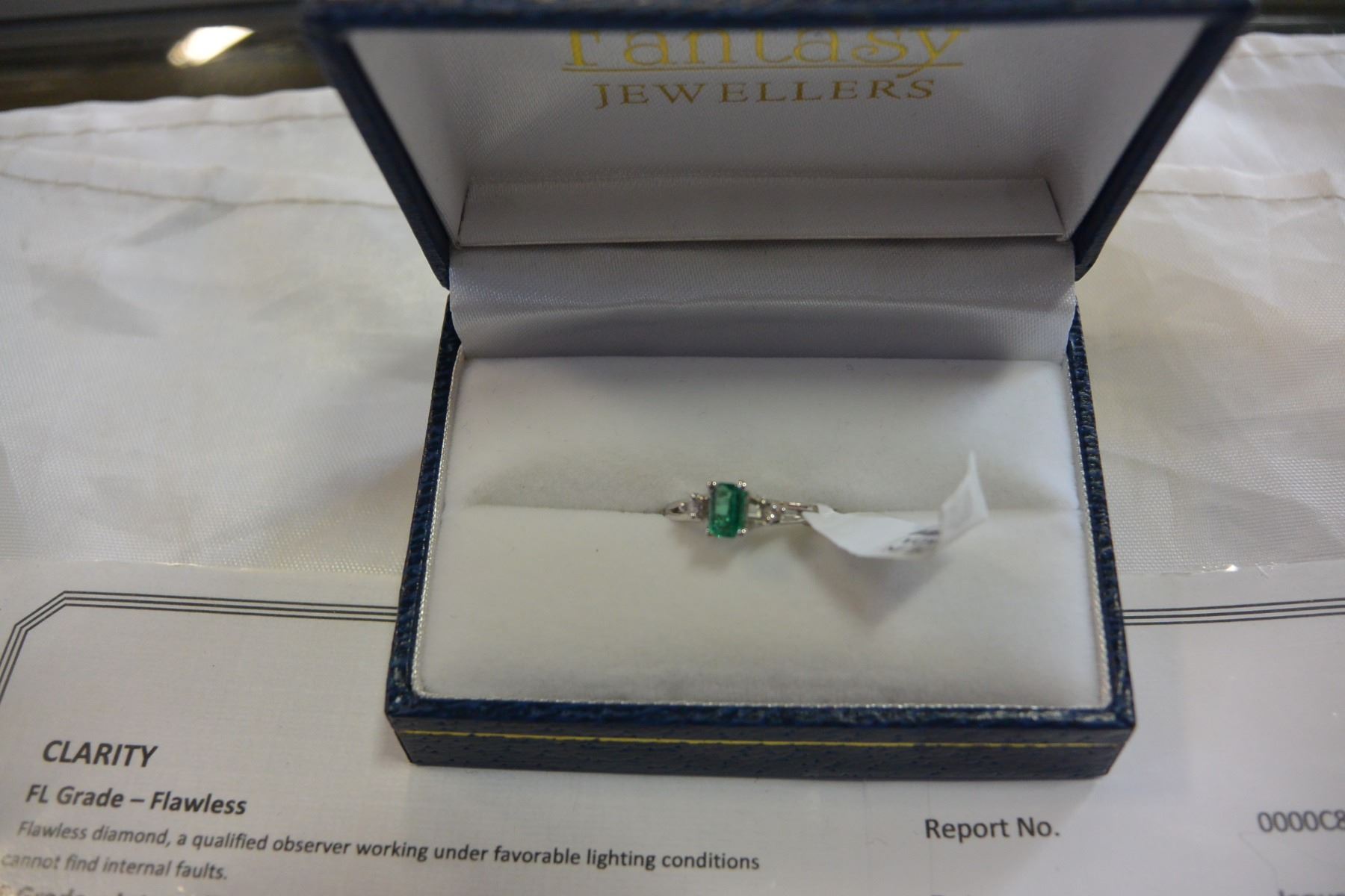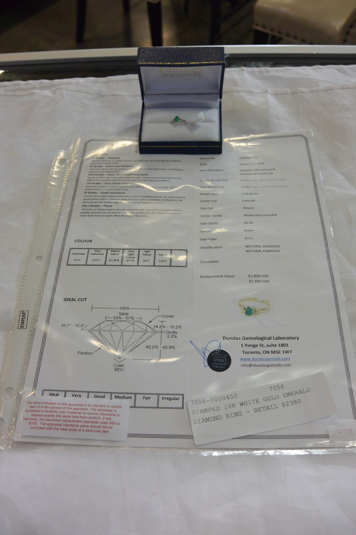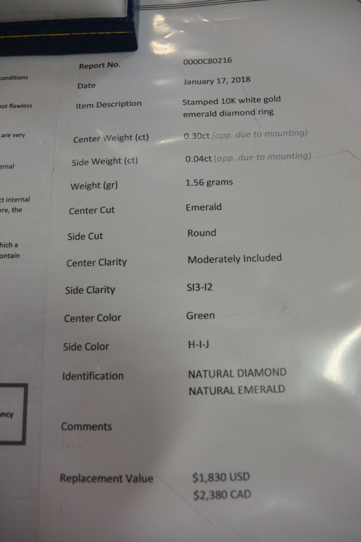STAMPED 10K WHITE GOLD EMERALD DIAMOND RING - RETAIL $2380