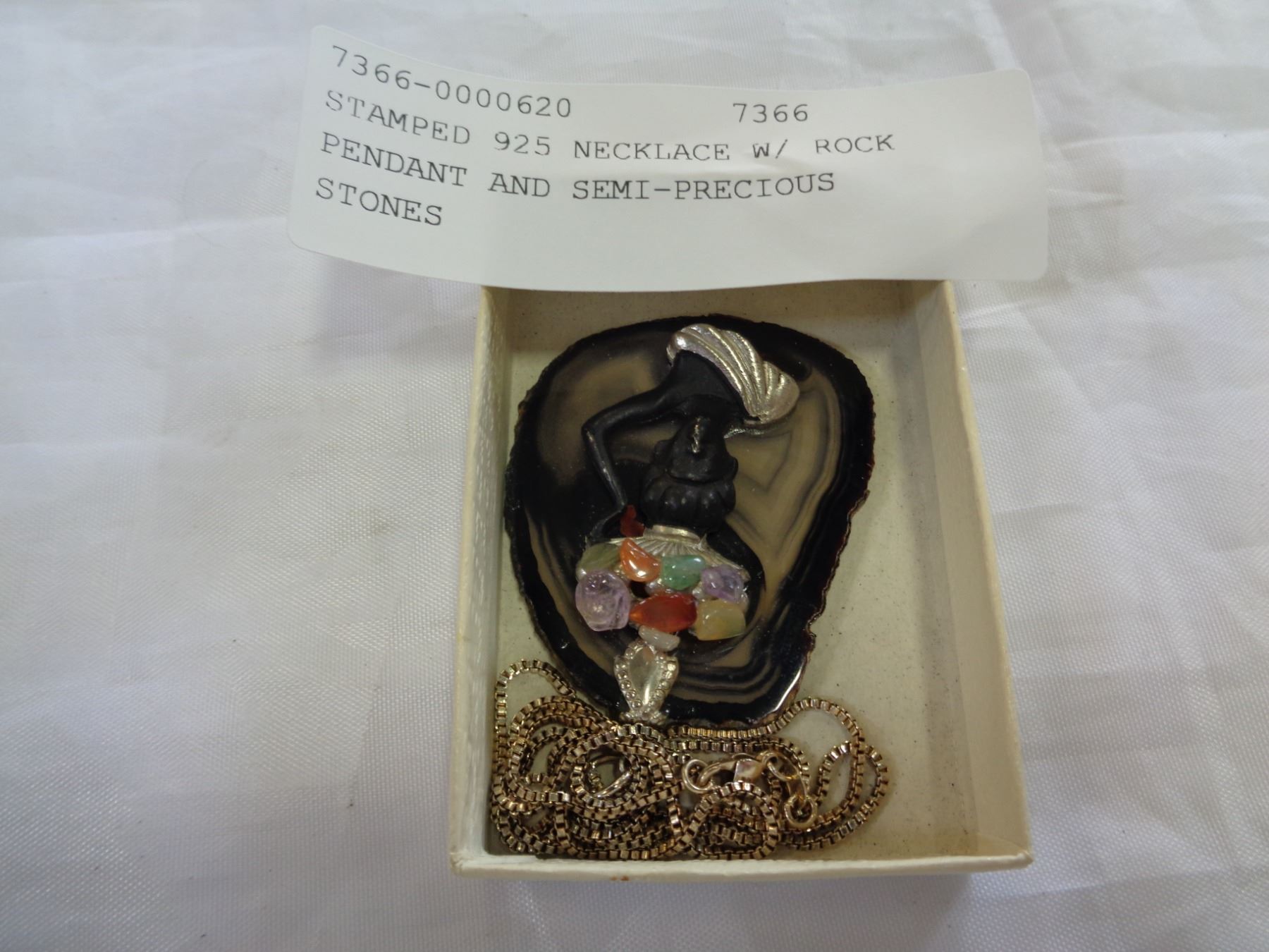 STAMPED 925 NECKLACE W/ ROCK PENDANT AND SEMI-PRECIOUS STONES