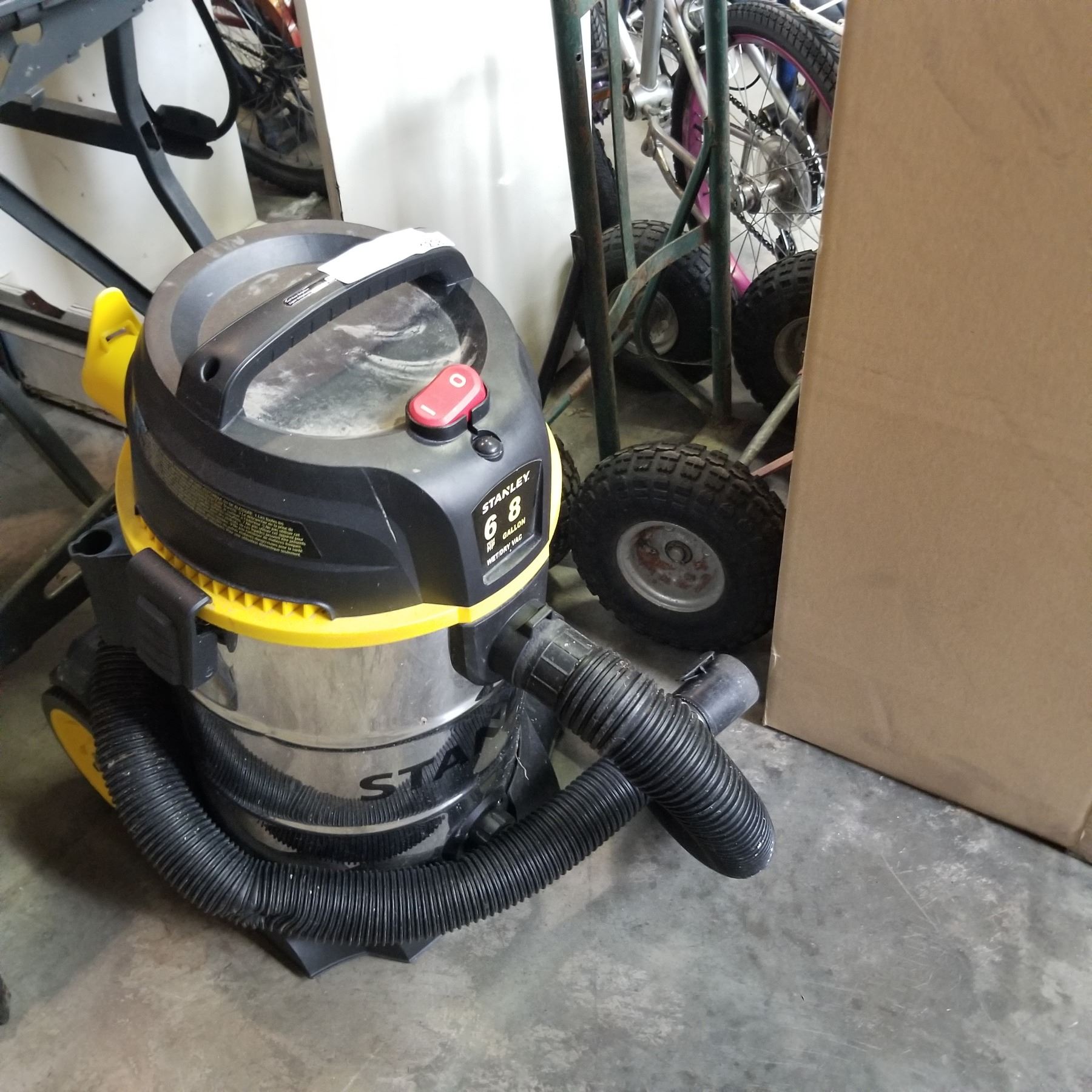 STANLEY 8 GALLON 6 HP SHOP VAC - MISSING FRONT WHEELS