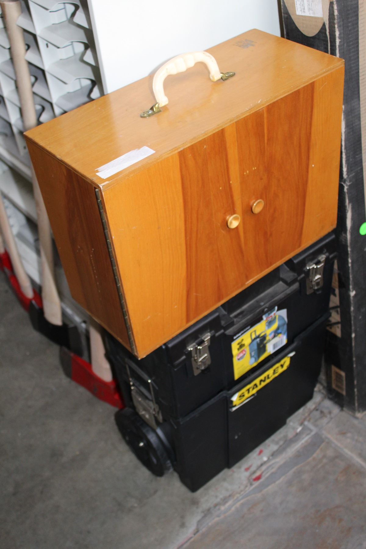 STANLEY ROLLING TOOLBOX AND WOODEN ORGANIZER
