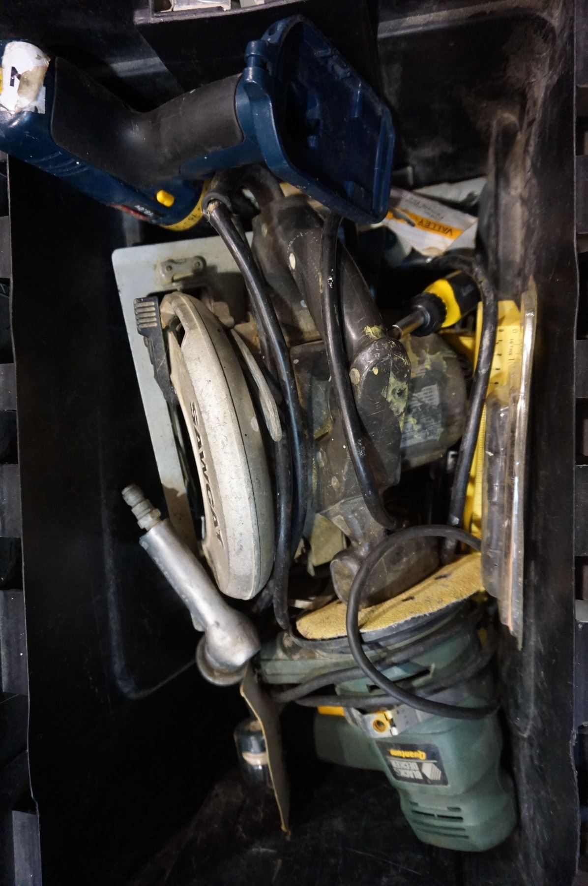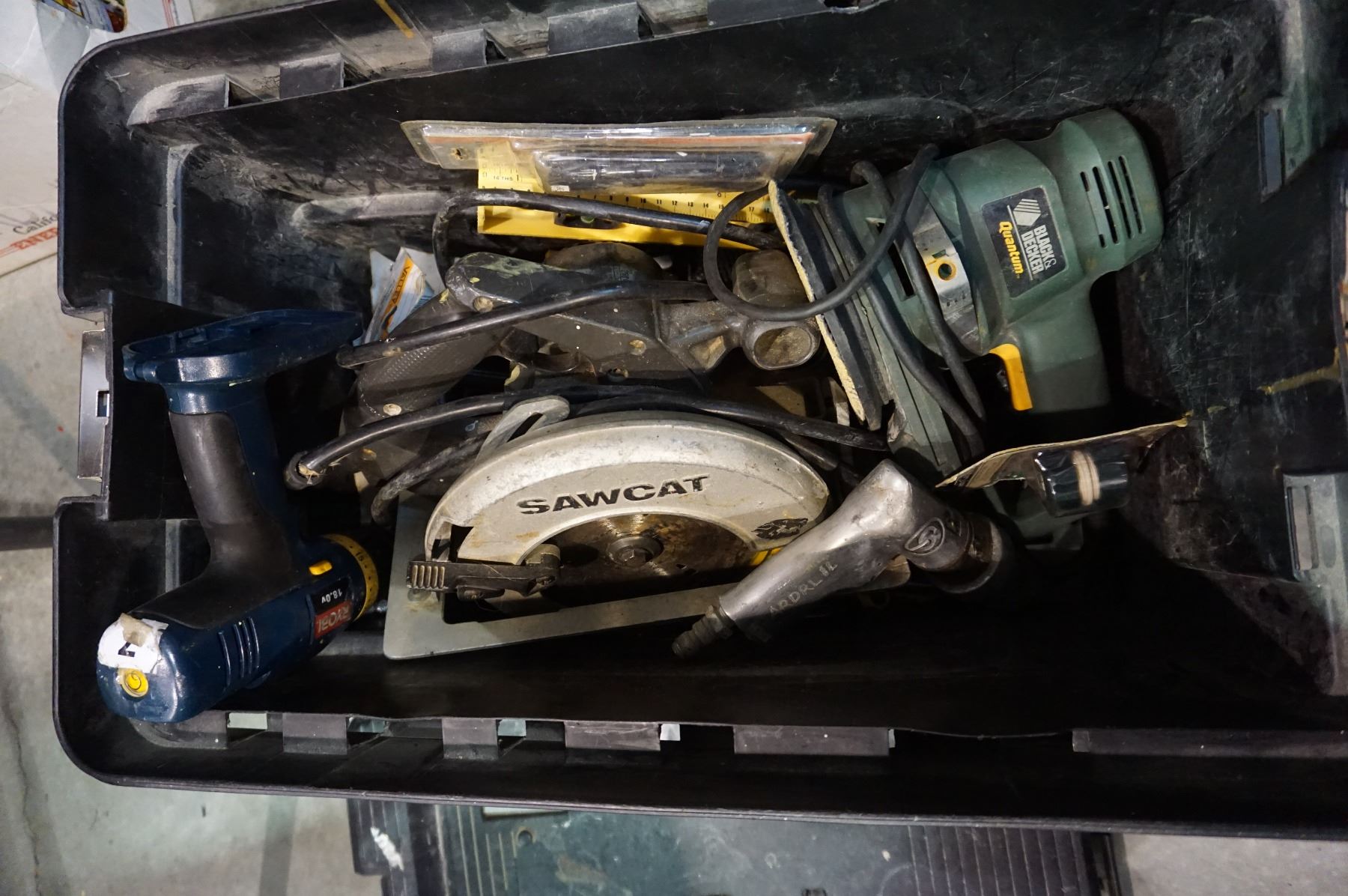 STANLEY ROLLING TOOLBOX W/ SANDER, SAW CAT, CIRCULAR SAW, AND TOOLS
