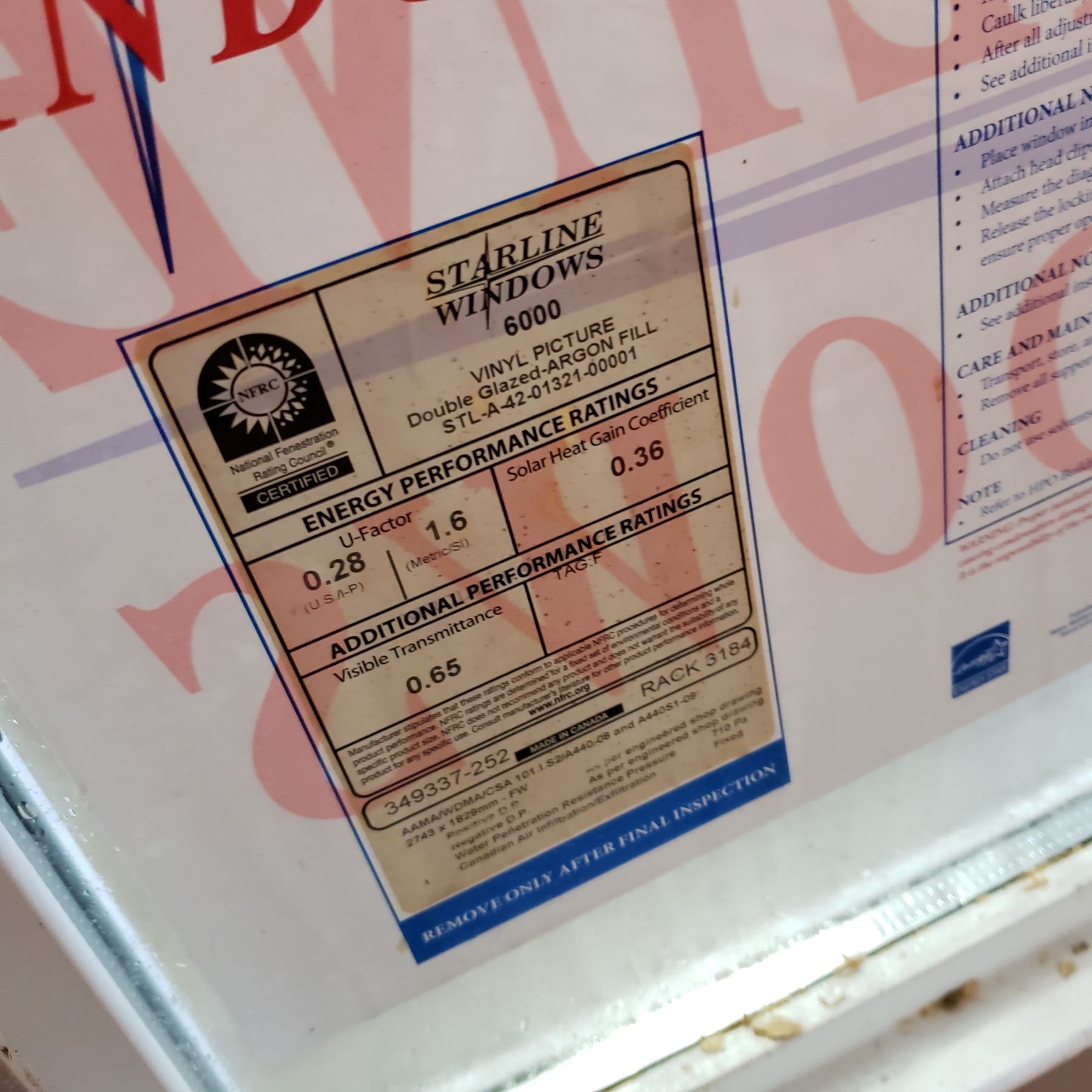 STARLINE WINDOWS 6000 VINYL PICTURE DOUBLE-GLAZED ARGON FILL 47-1/4 INCH SQUARED WINDOW