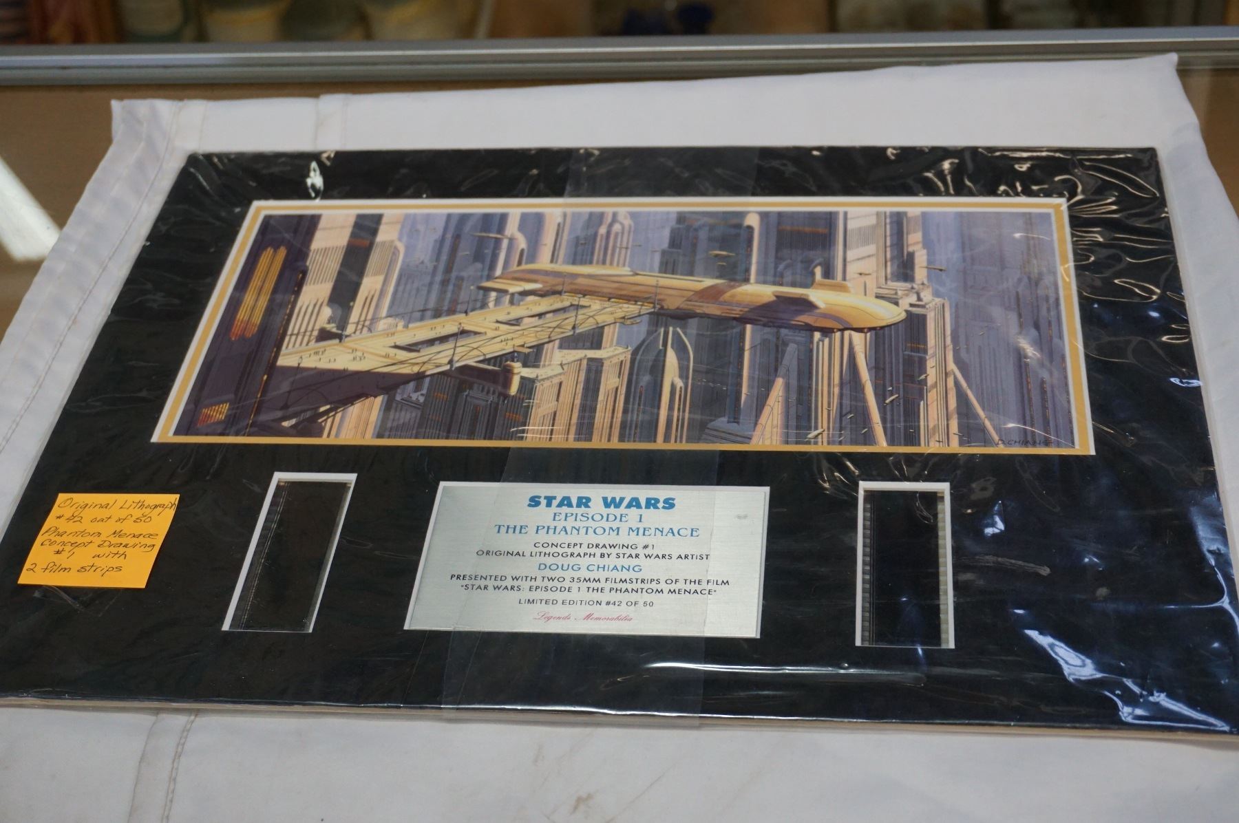 STARWARS EPISODE ONE PHANTOM MENACE CONCEPT DRAWING #1 DOUG CHIANG 42/50 WITH 2 FILM STRIPS ORIGINAL LITHOGRAPH