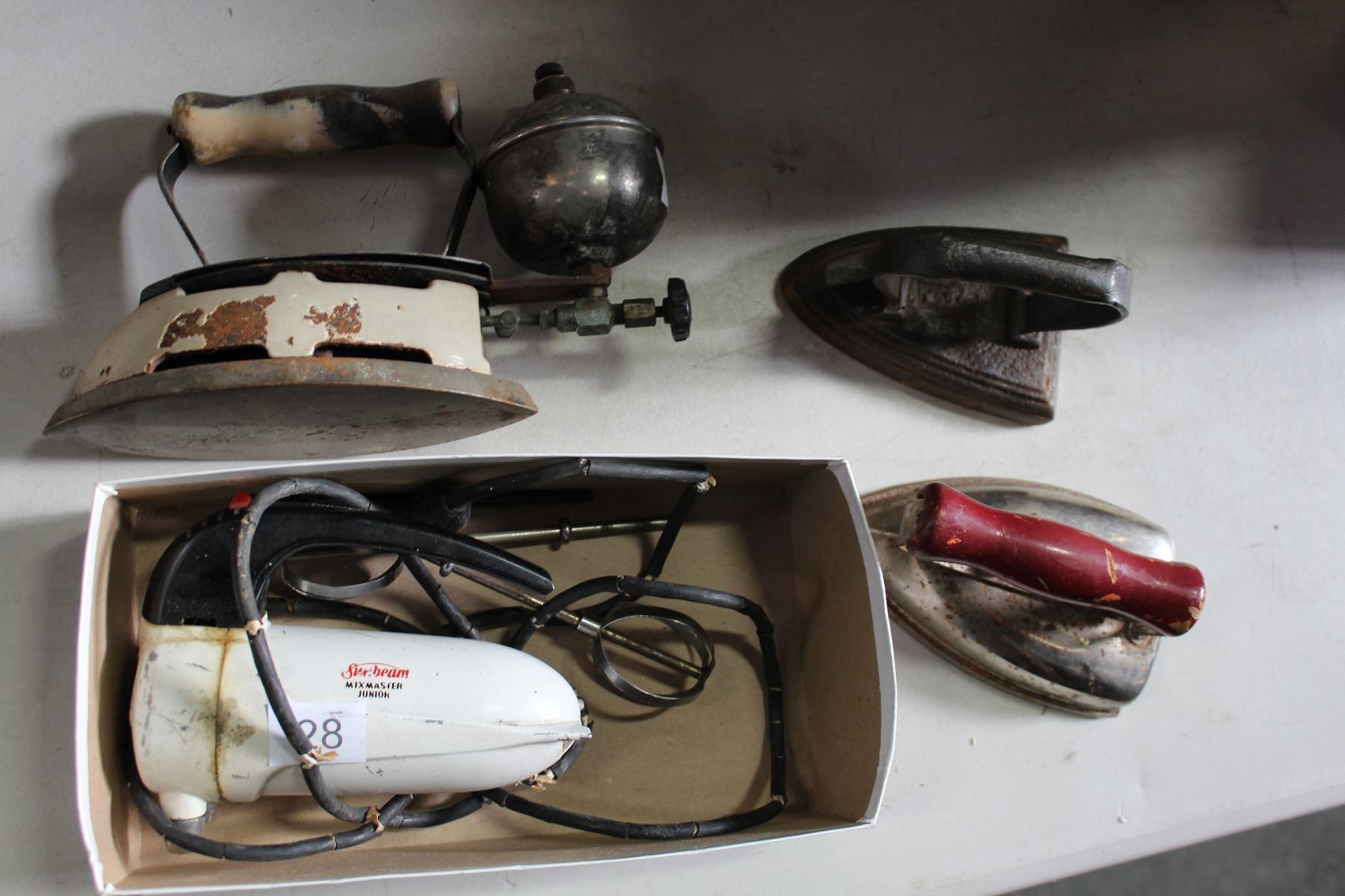 STEAM IRON AND ANTIQUE IRONS AND ELECTRIC HAND BLENDER