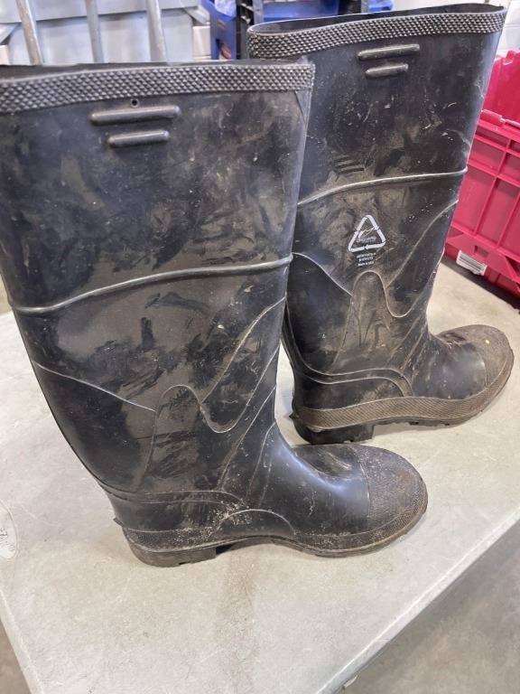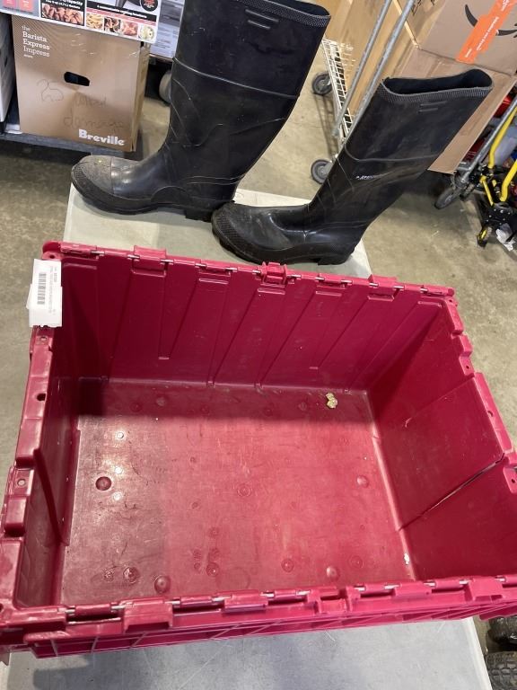 STEEL TOED SIZE 10 BOOTS AND RED TOTE