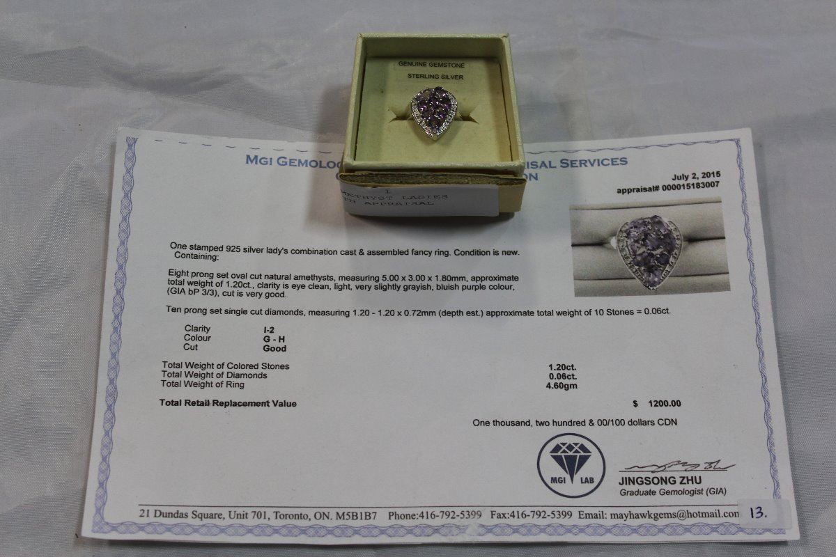 STERLING AND AMETHYST LADIES DINNER RING WITH APPRAISAL
