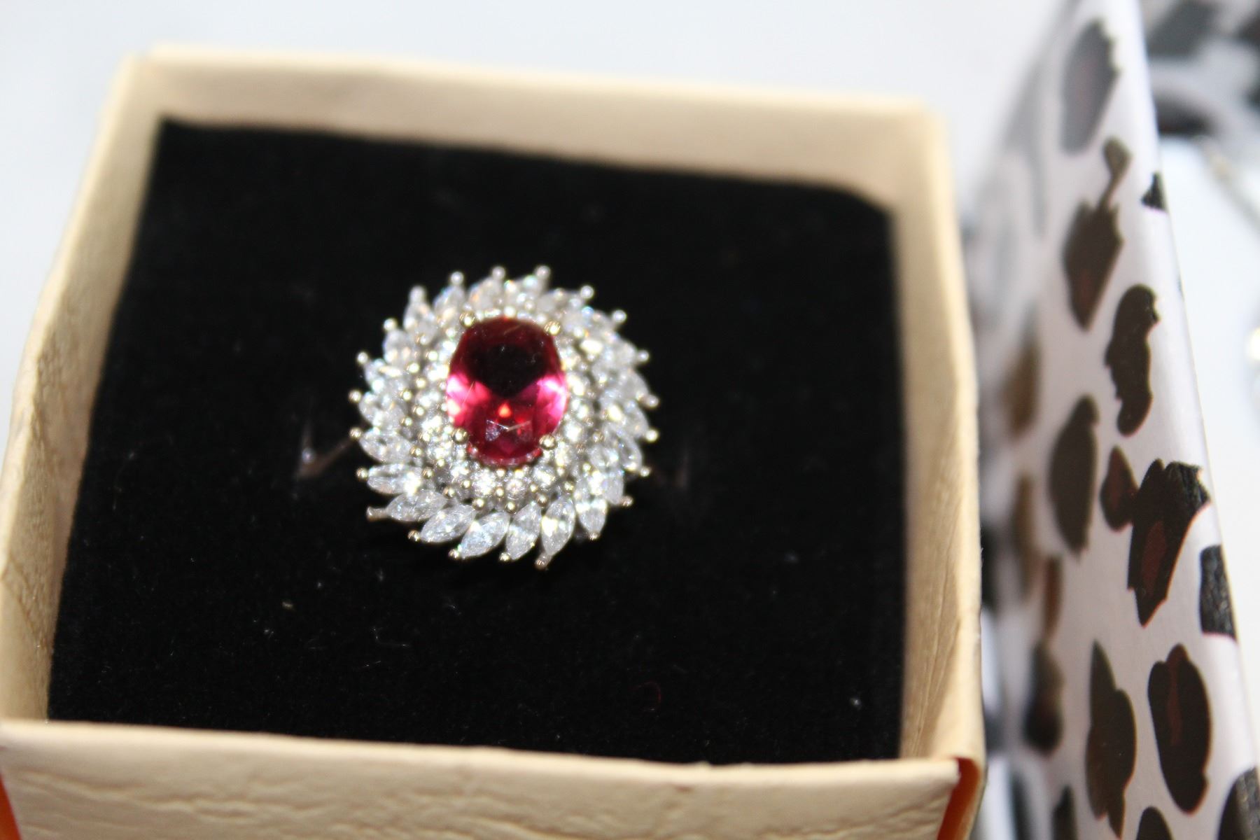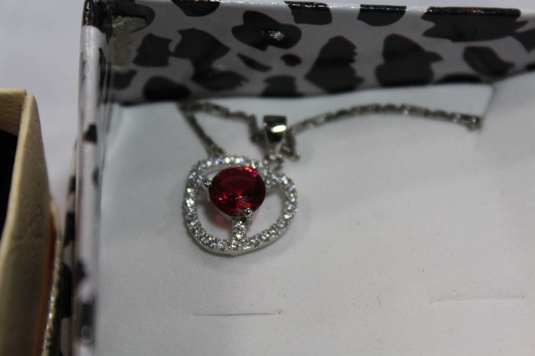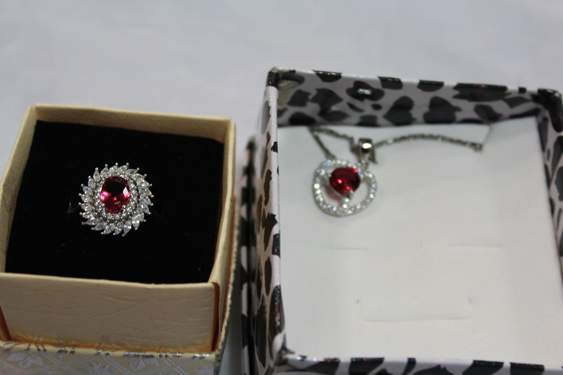 STERLING AND RUBY PENDANT NECKLACE AND RING