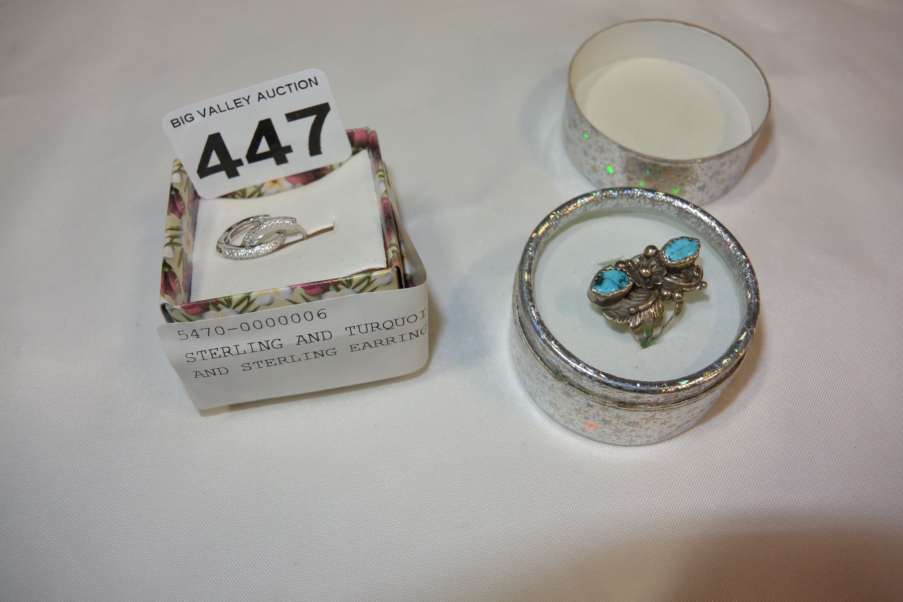 STERLING AND TURQUOISE RING AND STERLING EARRINGS