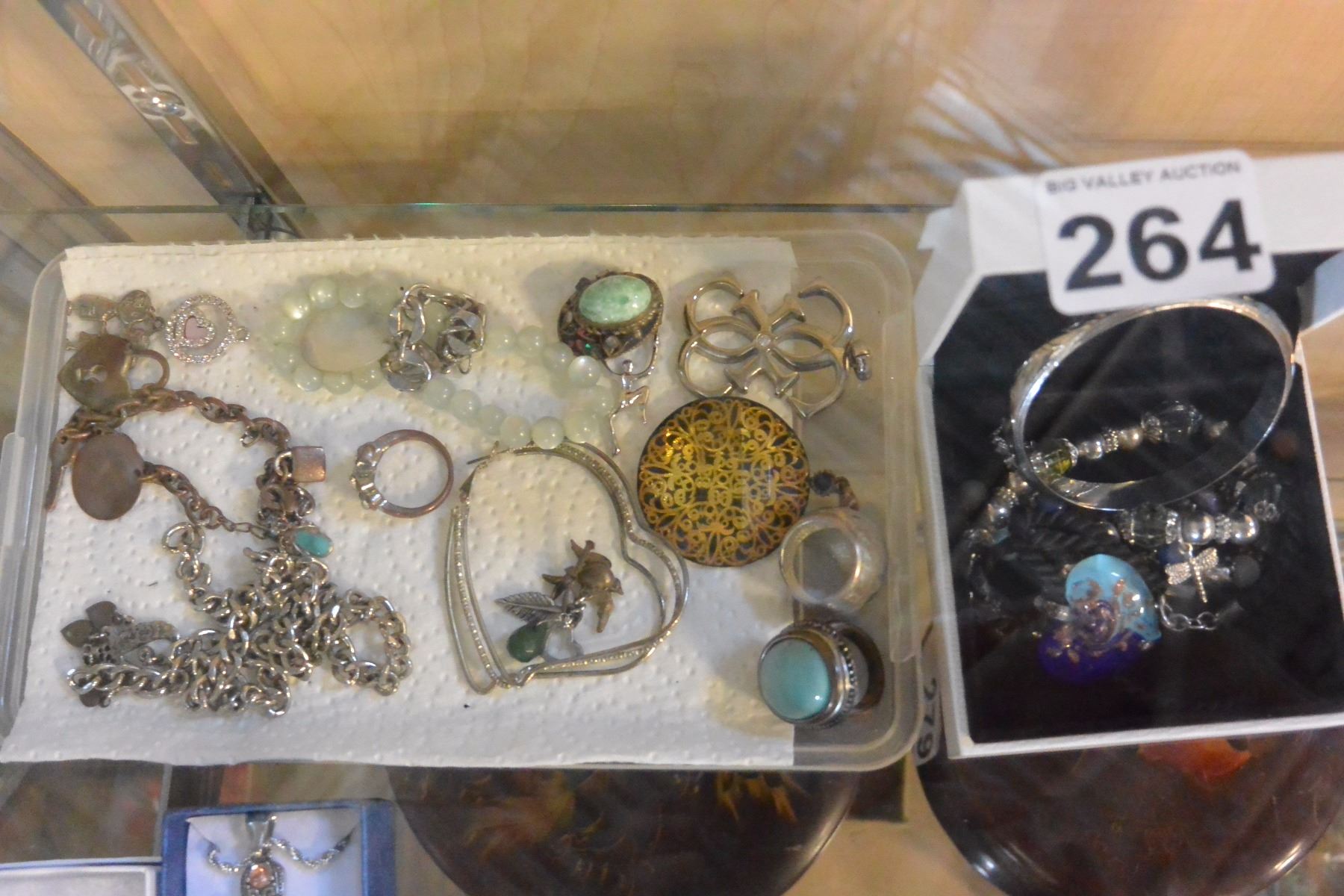 STERLING BANGLE AND VENETIAN GLASS HEART PENDANT AND BRACELETS
