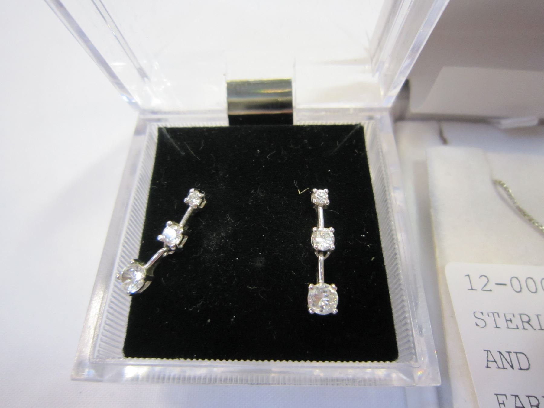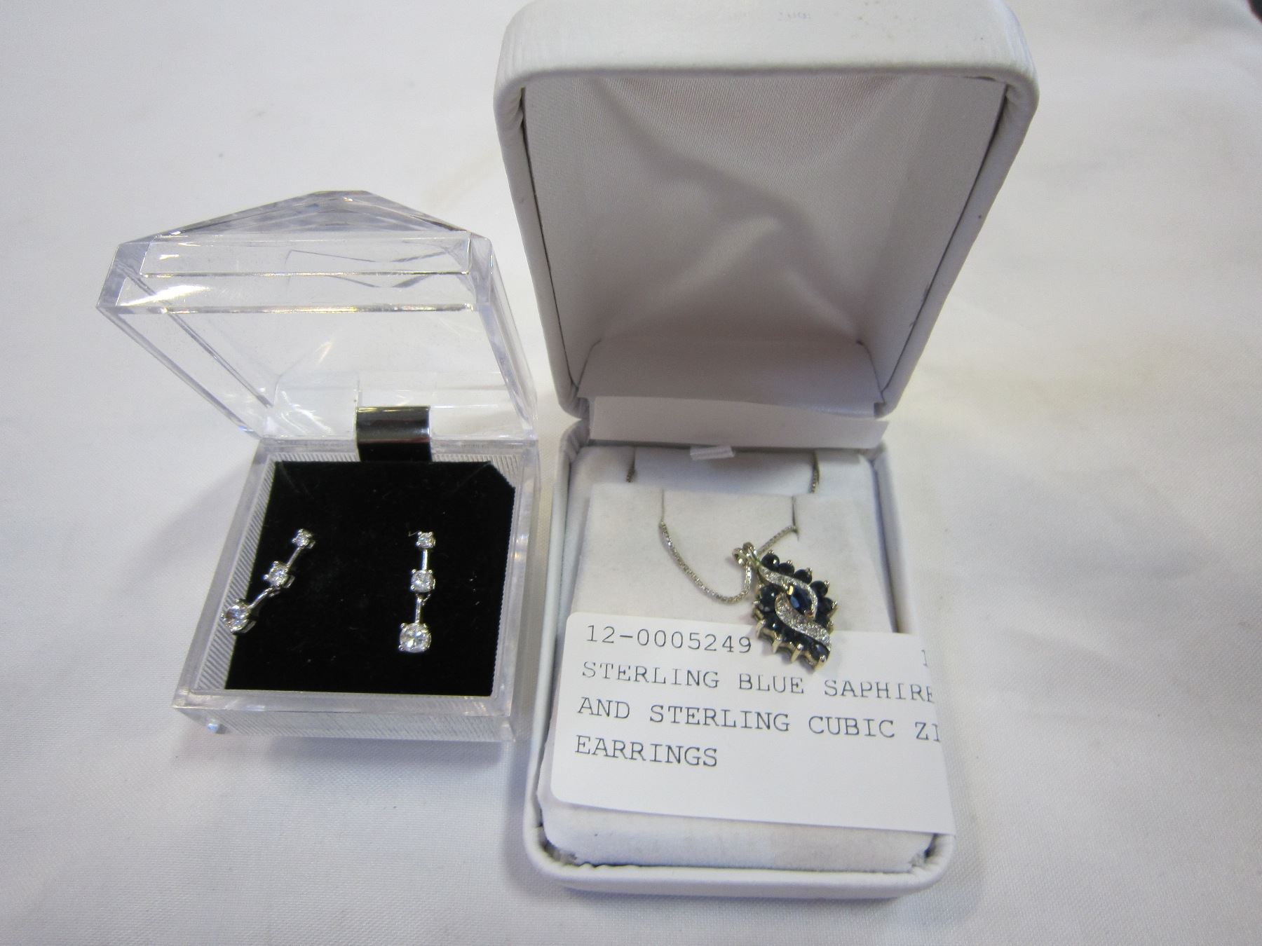 STERLING BLUE SAPHIRE PENDANT AND STERLING CUBIC ZIRCONIA EARRINGS