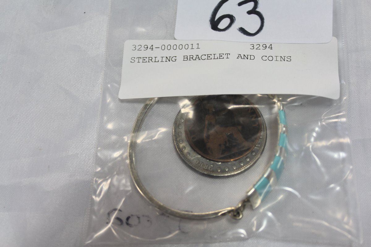STERLING BRACELET AND COINS