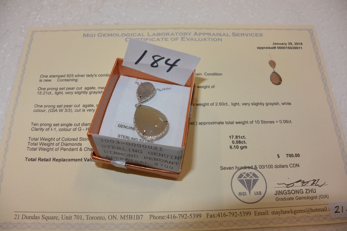 STERLING GENUINE AGATE AND DIAMOND PENDANT AND CHAIN WITH