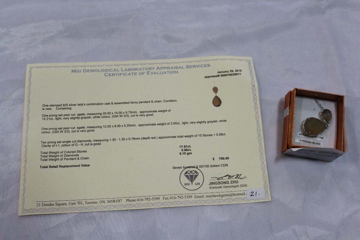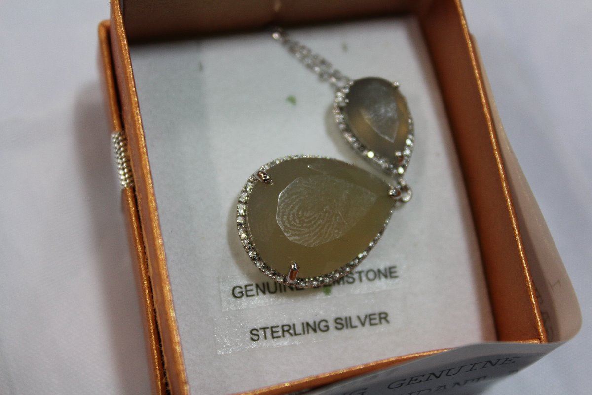 STERLING GENUINE AGATE AND DIAMOND PENDANT AND CHAIN WITH