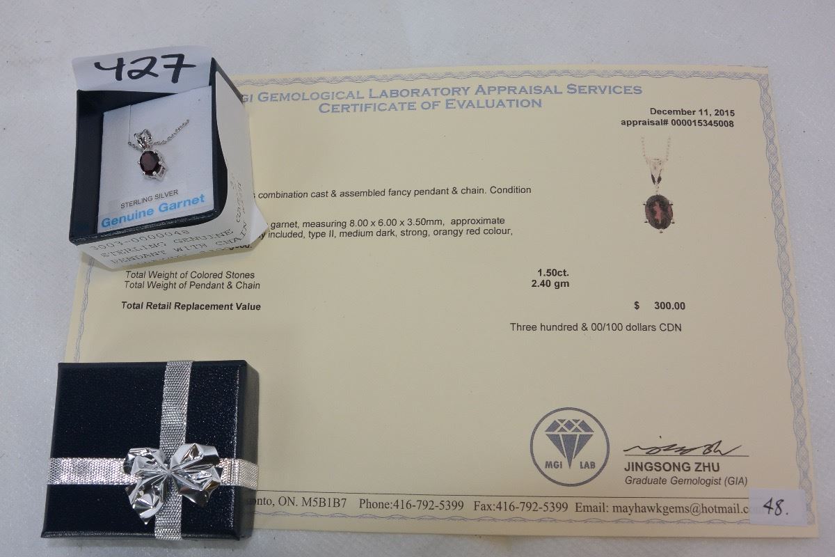 STERLING GENUINE GARNET PENDANT WITH CHAIN WITH