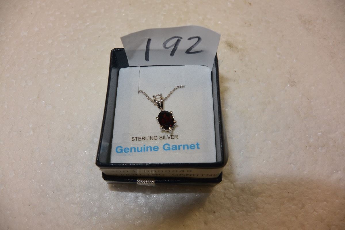 STERLING GENUINE GARNET PENDANT WITH CHAIN WITH