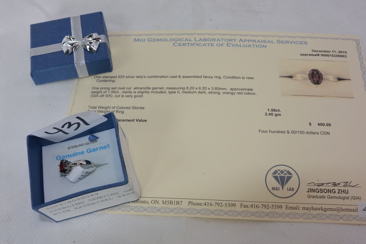 STERLING GENUINE GARNET RING WITH APPRAISAL $400