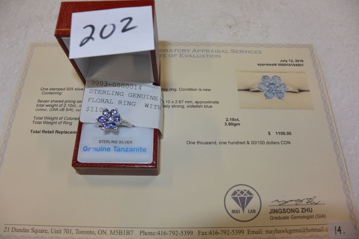 STERLING GENUINE TANZANITE FLORAL RING WITH APPRAISAL