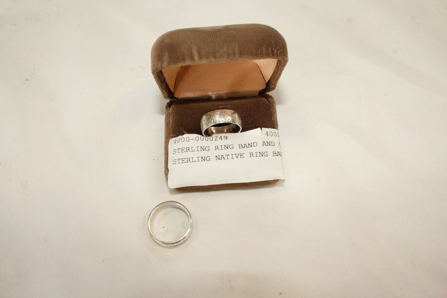 STERLING RING BAND AND CARVED STERLING NATIVE RING BAND