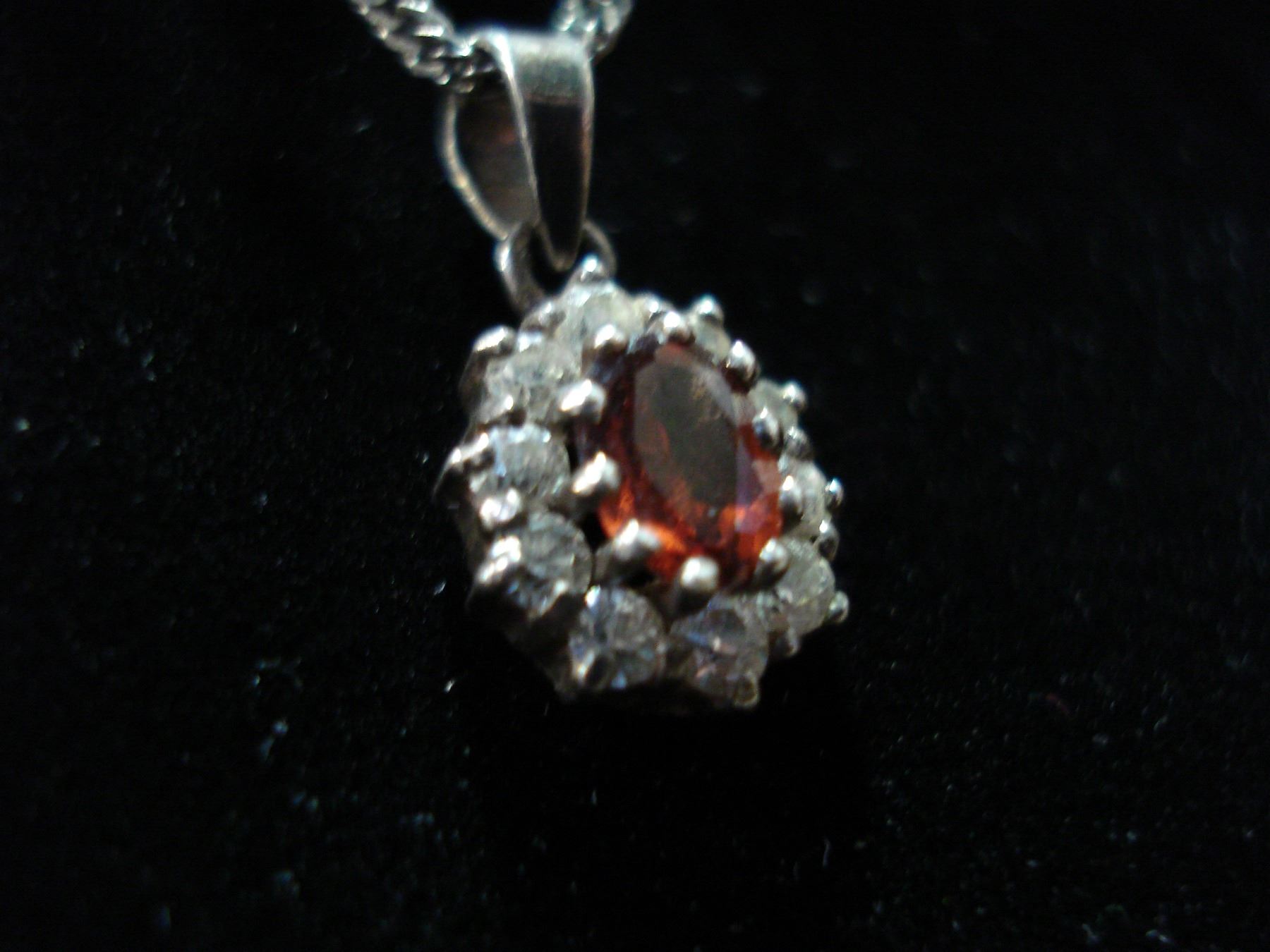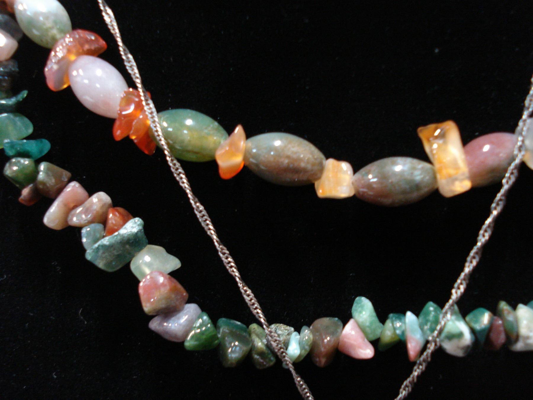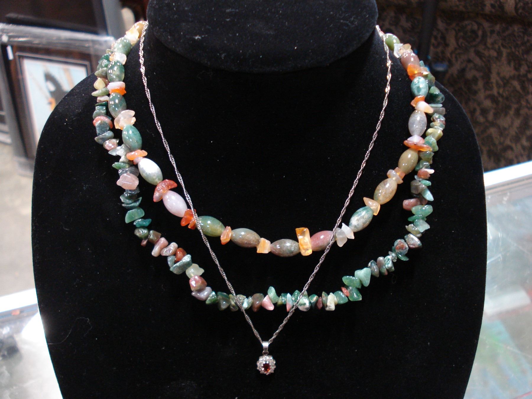 STERLING RUBY STONE PENDANT AND PRECIOUS STONE DOUBLE STRAND NECKLACE