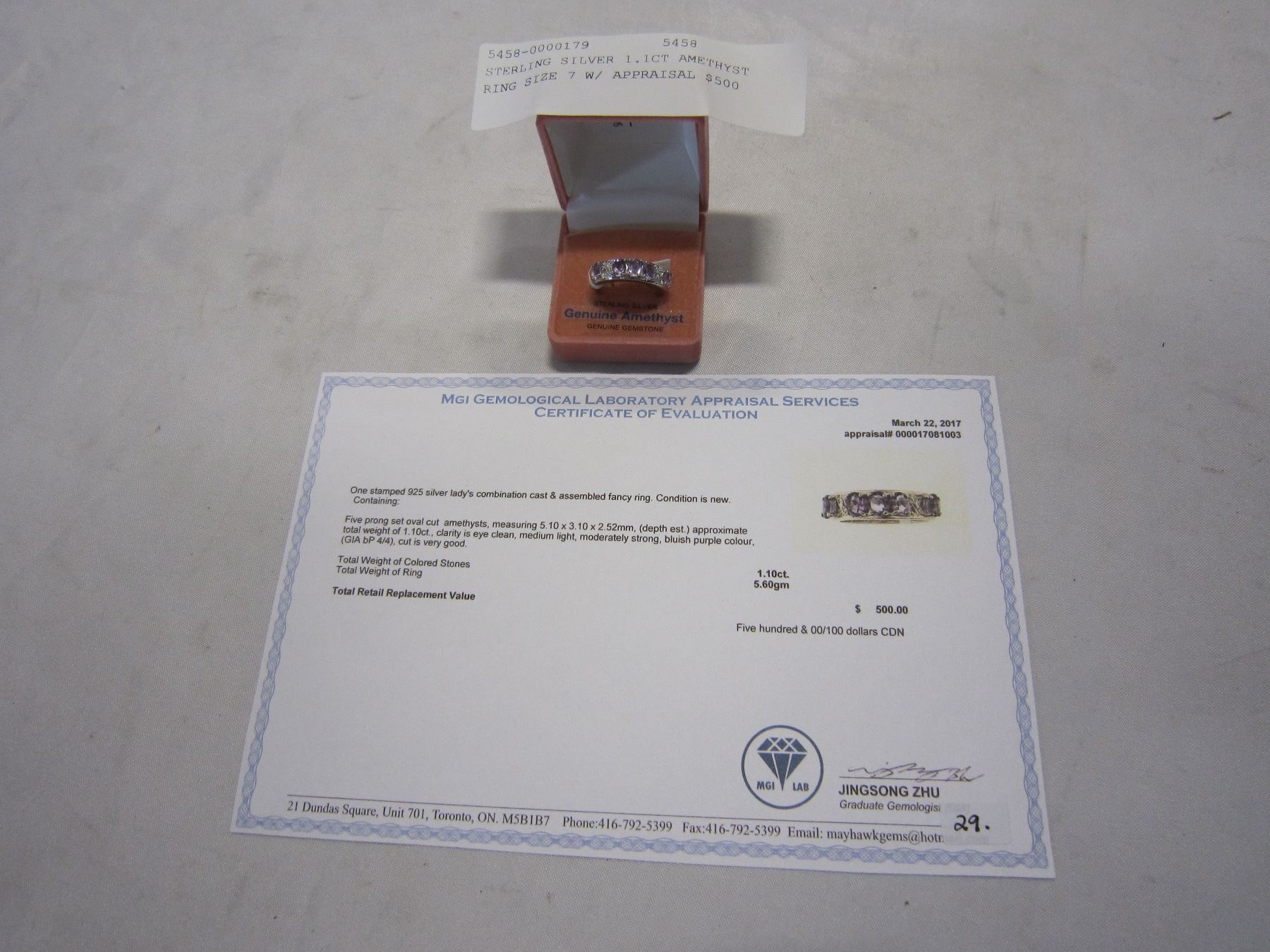 STERLING SILVER 1.1CT AMETHYST RING SIZE 7 W/ APPRAISAL $500