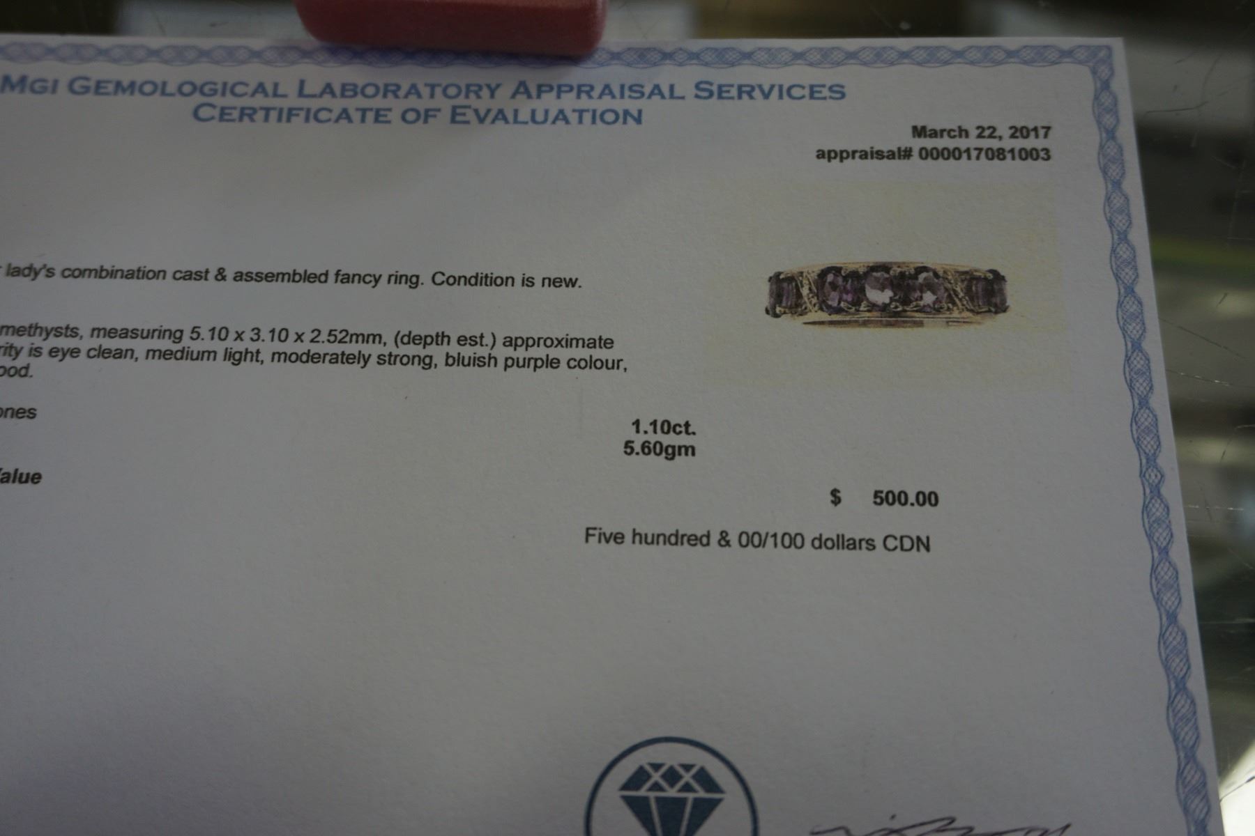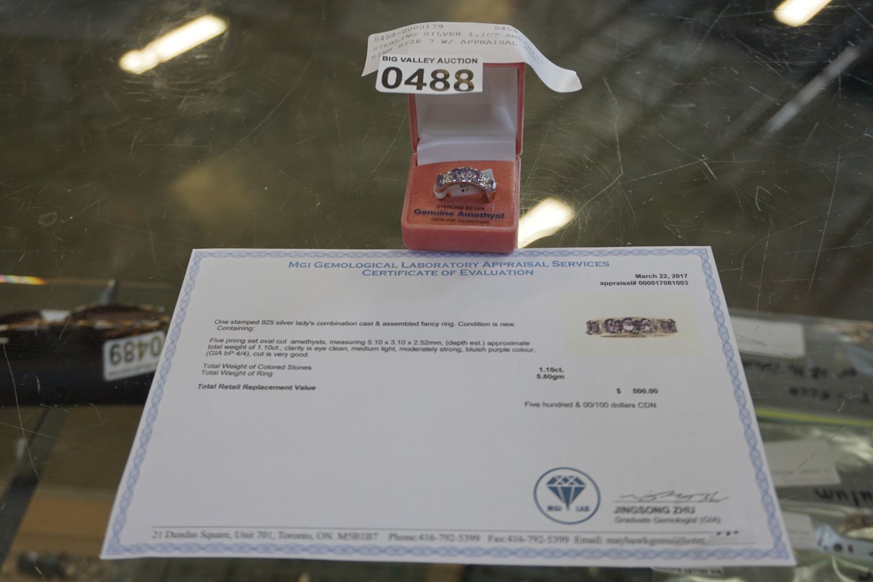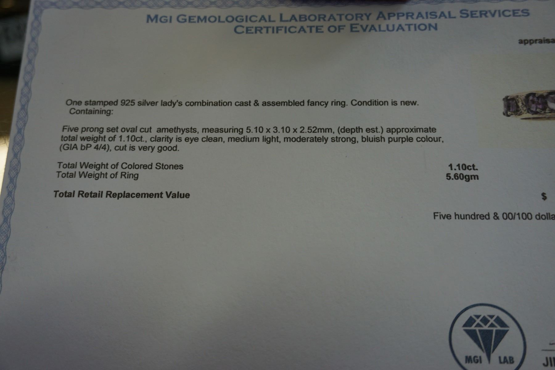 STERLING SILVER 1.1CT AMETHYST RING SIZE 7 W/ APPRAISAL $500