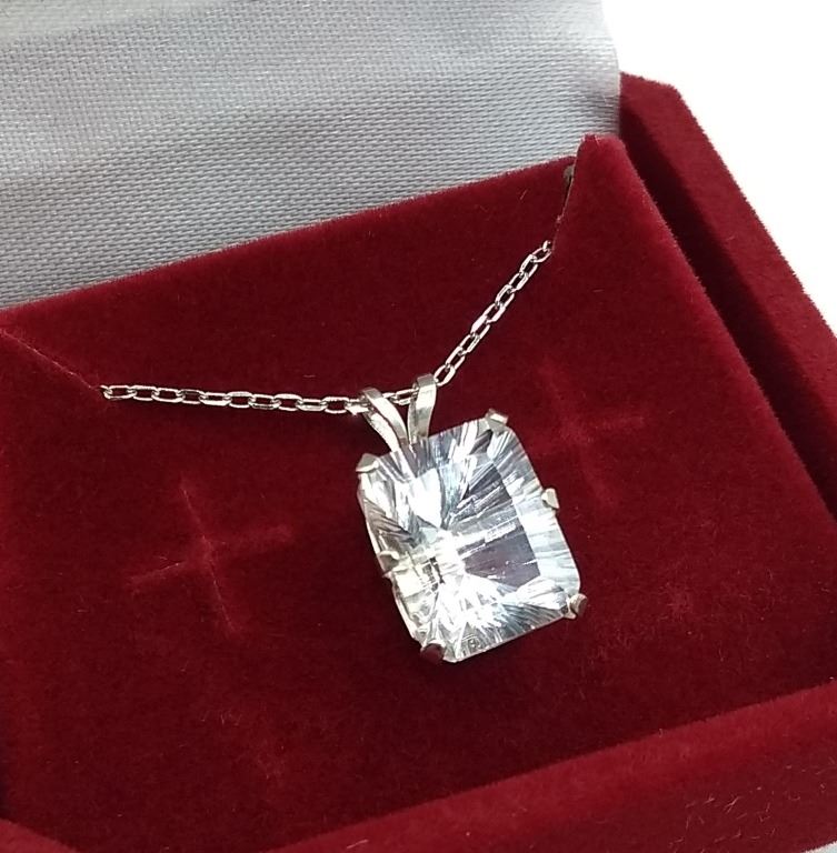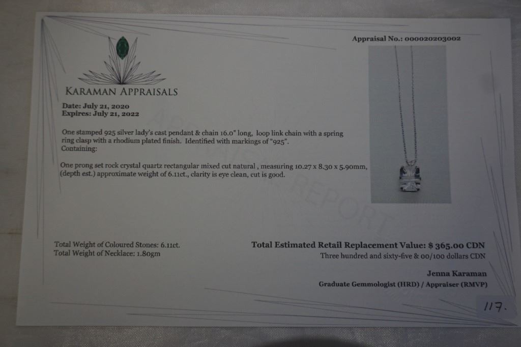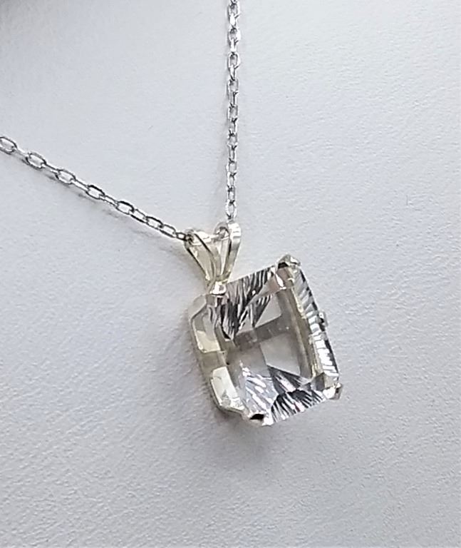 STERLING SILVER 10X8MM GENUINE CRYSTAL ROCK QUARTZ PENDANT W/ STERLING CHAIN W/ APPRAISAL $365 - 6.11CTS QUARTZ