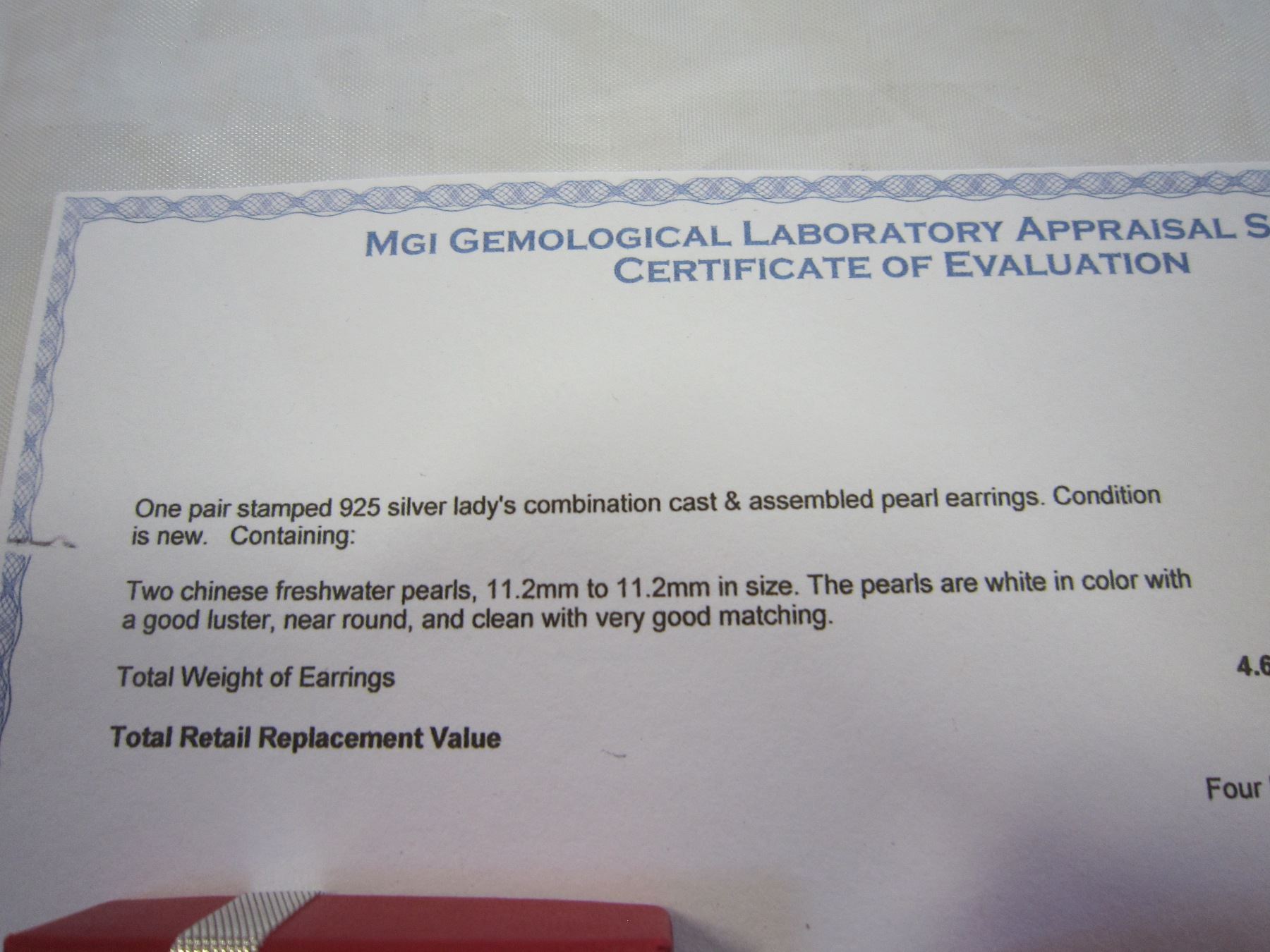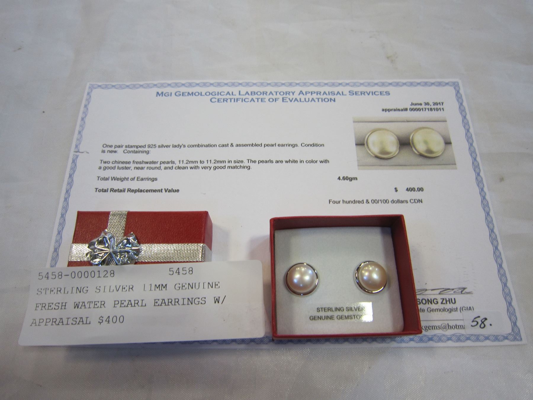 STERLING SILVER 11MM GENUINE FRESH WATER PEARL EARRINGS W/ APPRAISAL $400