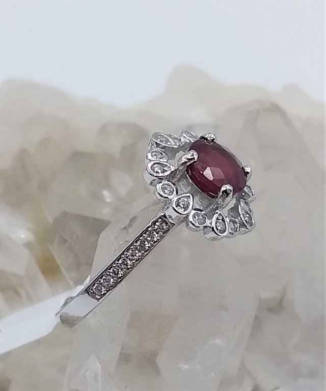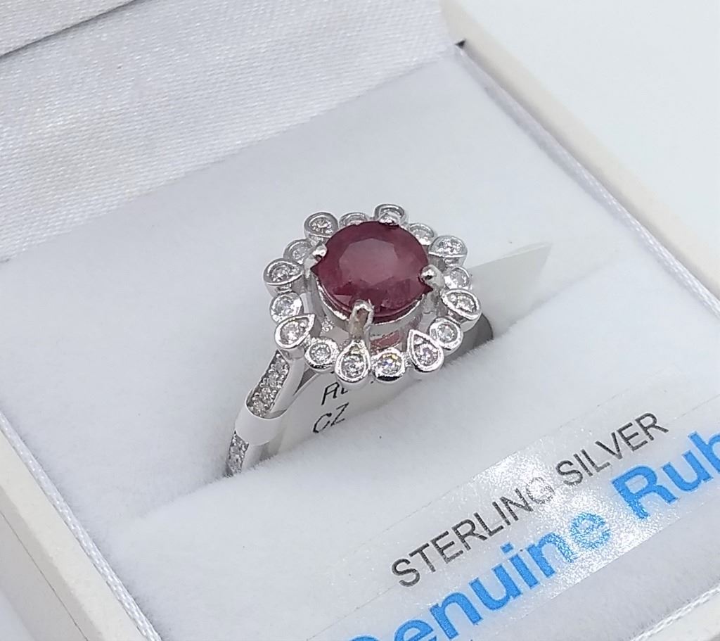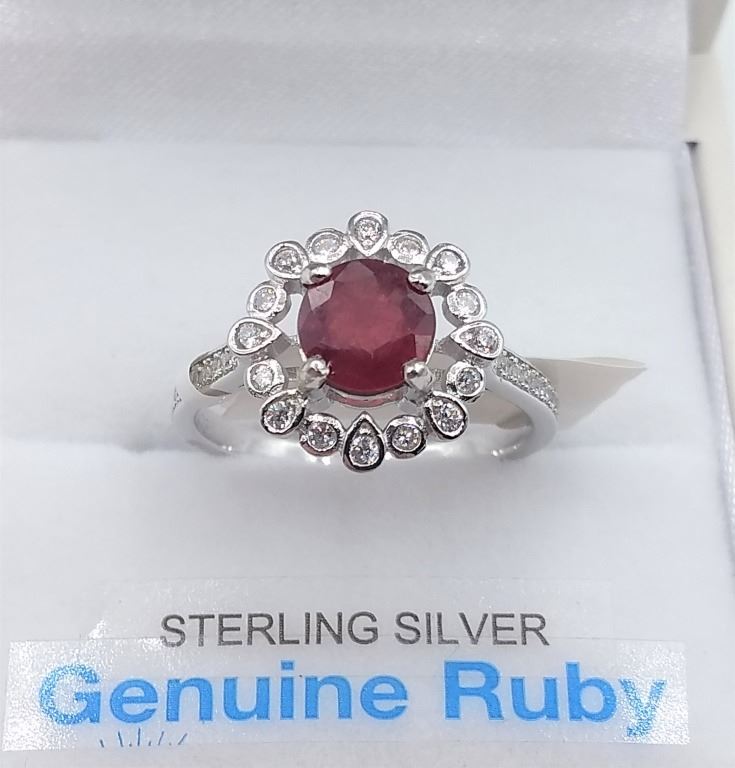 STERLING SILVER 6MM GENUINE RUBY AND CZ RING - RETAIL $500, SIZE 8