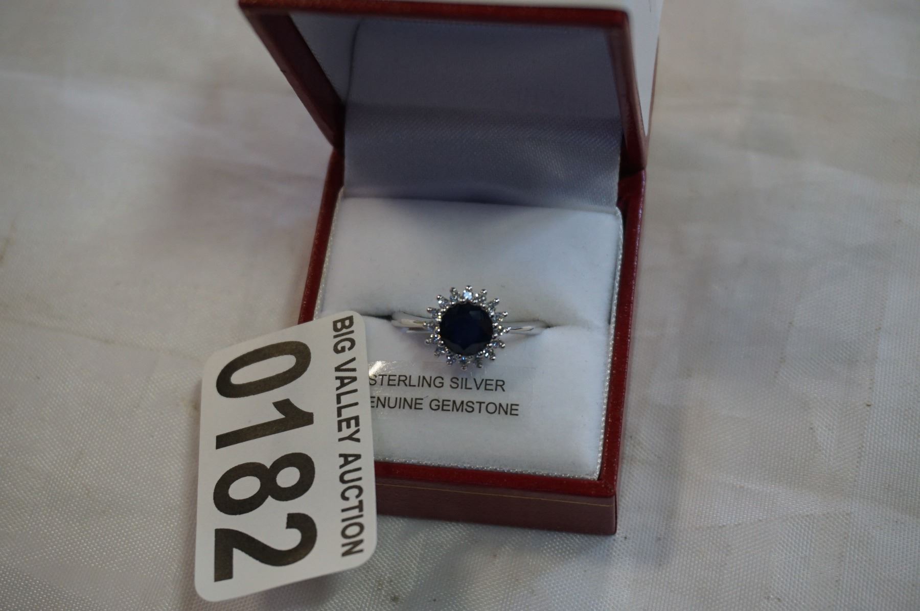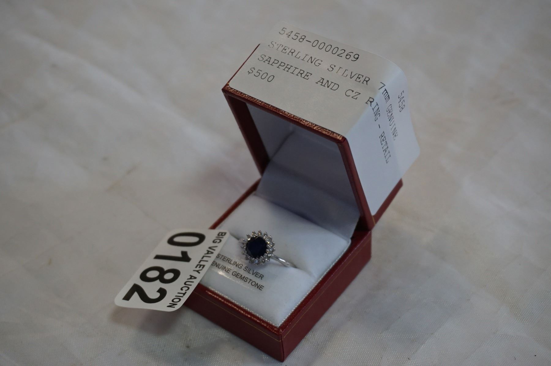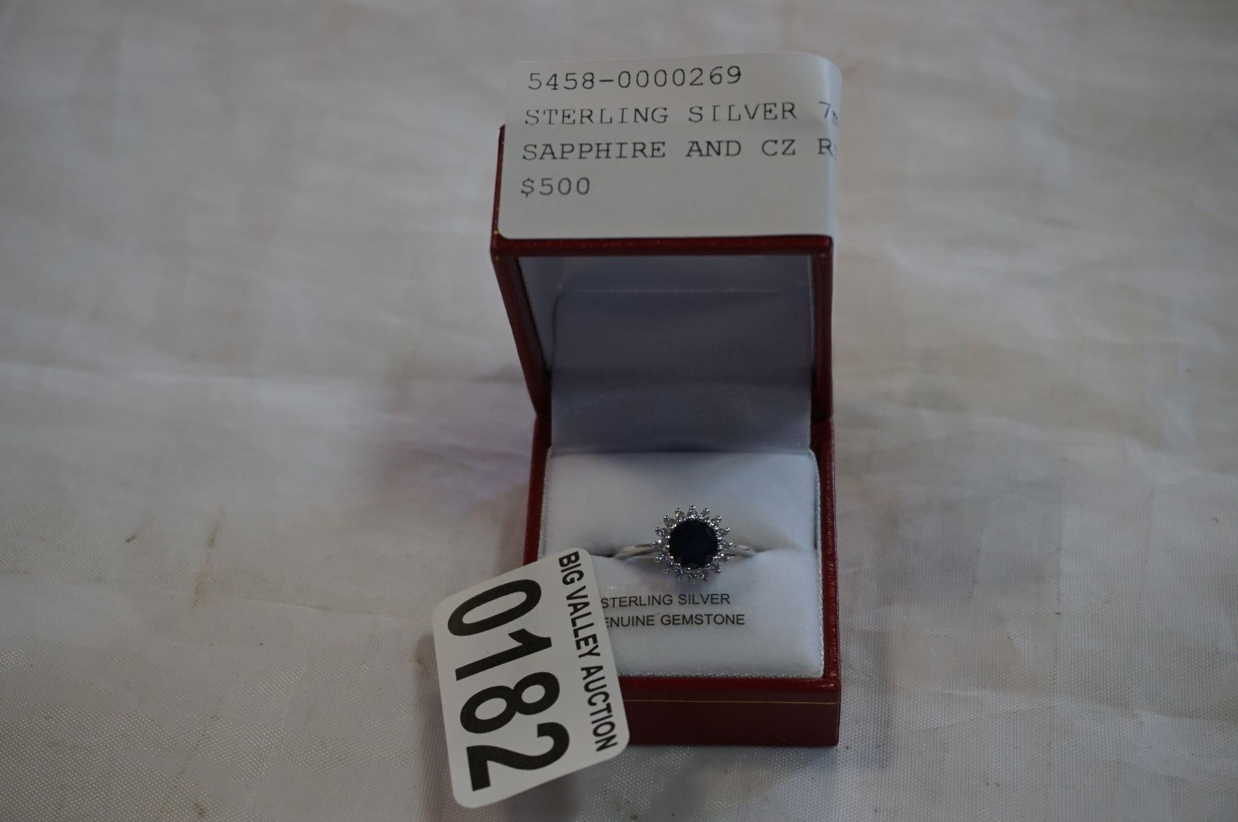 STERLING SILVER 7mm GENUINE SAPPHIRE AND CZ RING - RETAIL $500