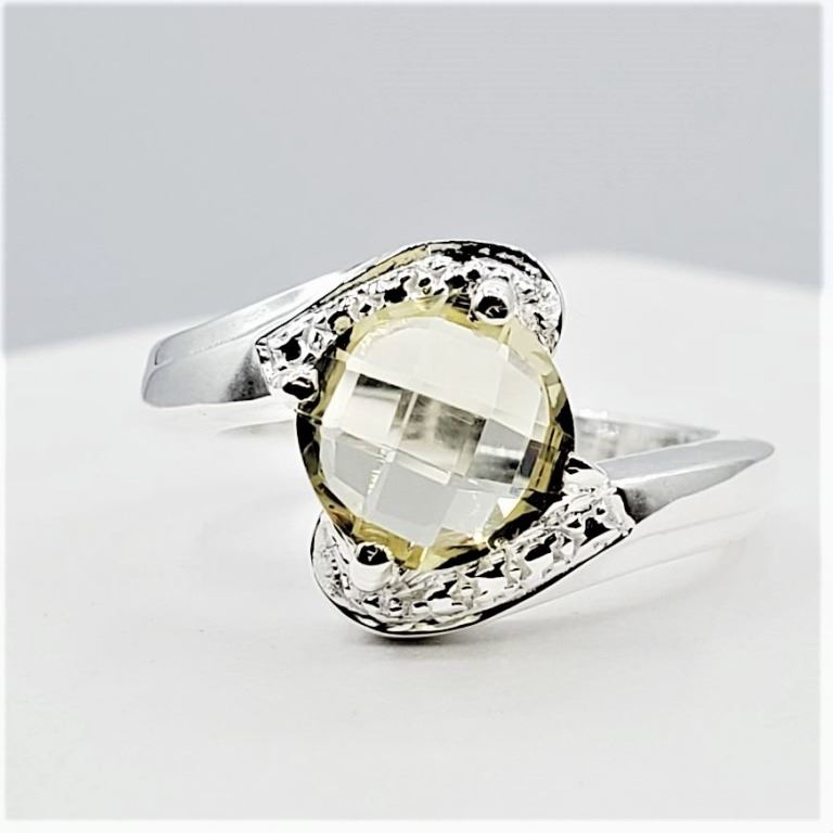 STERLING SILVER 8.15MM X 8.2MM NATURAL LEMON QUARTZ (1.72CTS) RING, W/A $440.00, SIZE 7