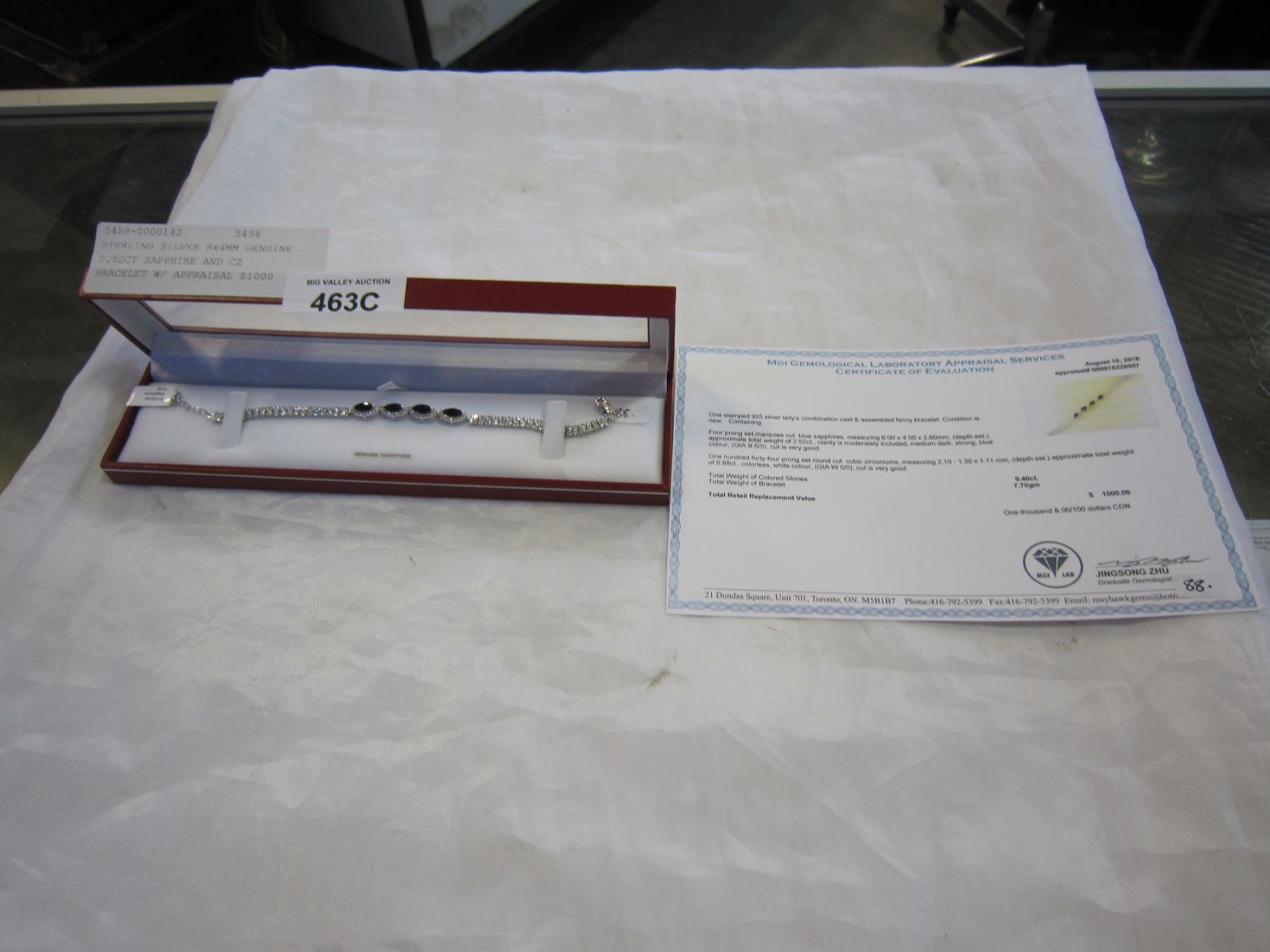 STERLING SILVER 8x4MM GENUINE 2.52CT SAPPHIRE AND CZ BRACELET W/ APPRAISAL $1000