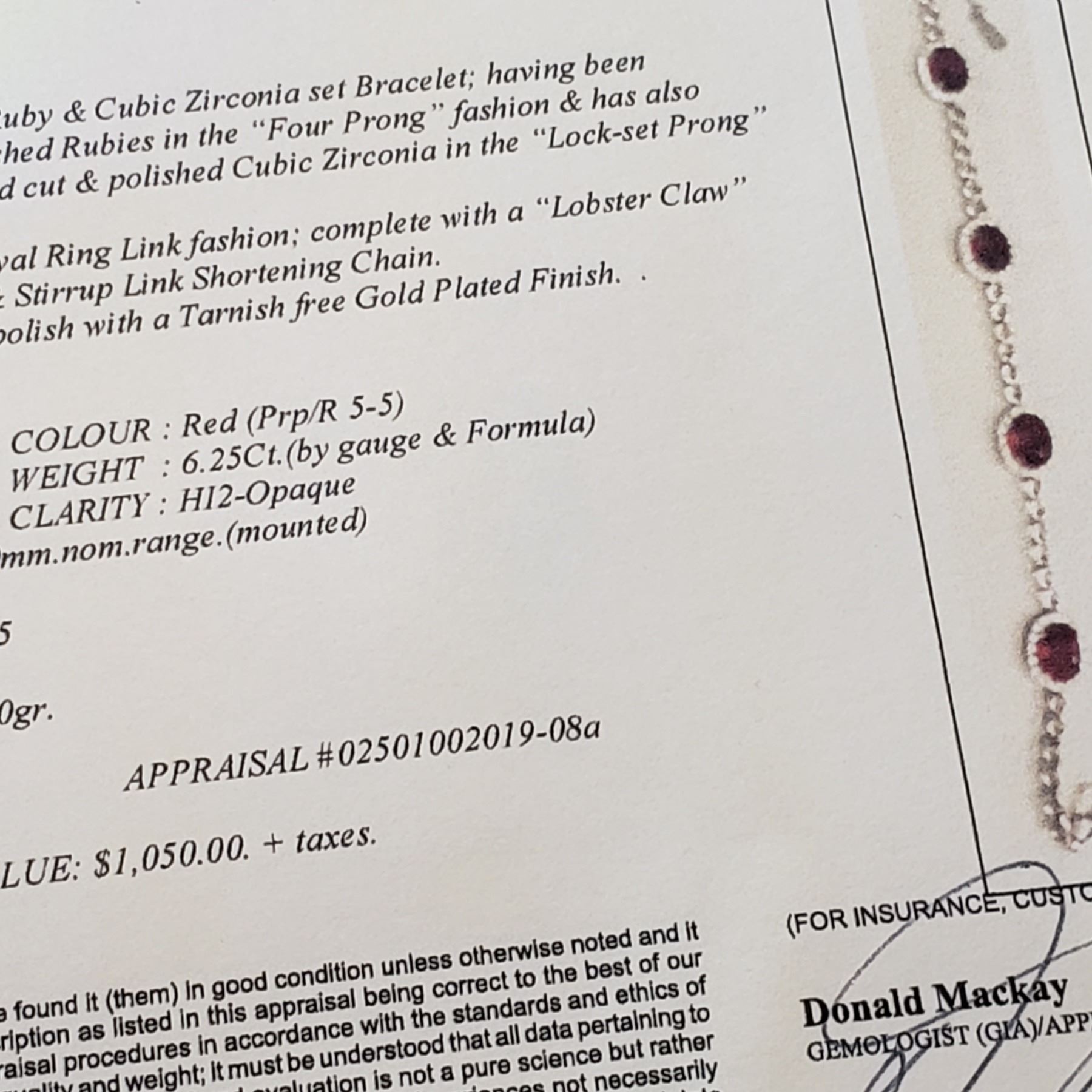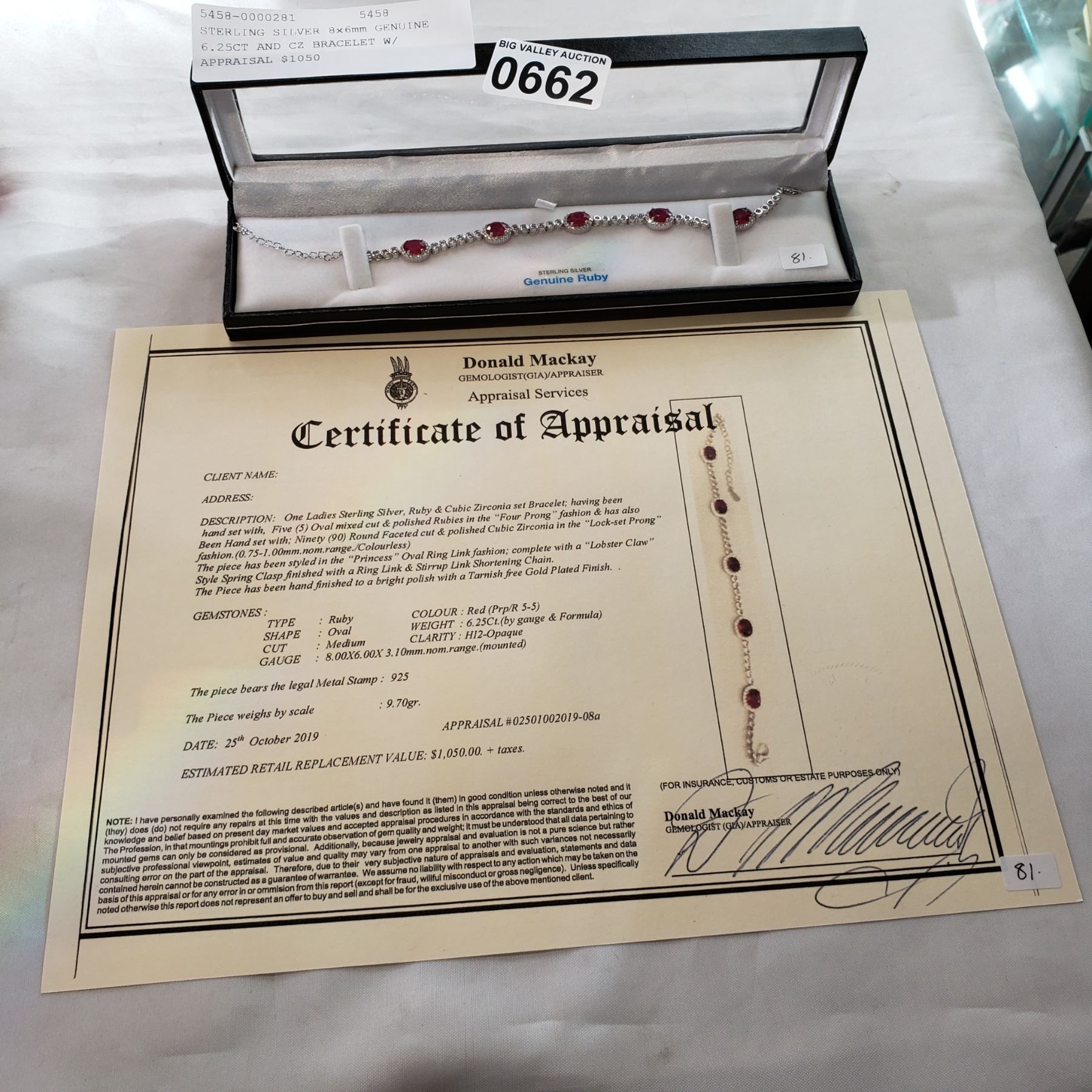 STERLING SILVER 8x6mm GENUINE 6.25CT AND CZ BRACELET W/ APPRAISAL $1050