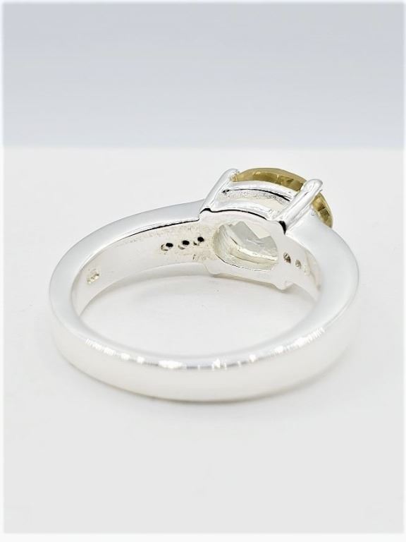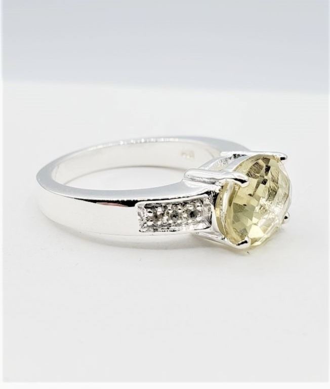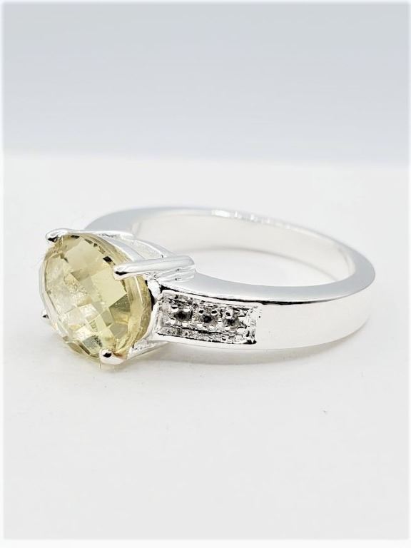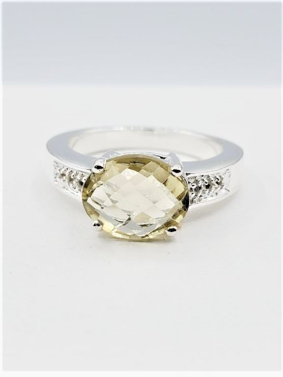 STERLING SILVER 9.9MM X 7.6MM NATURAL LEMON QUARTZ (2.09CTS) & CZ RING, W/A $640.00, SIZE 7