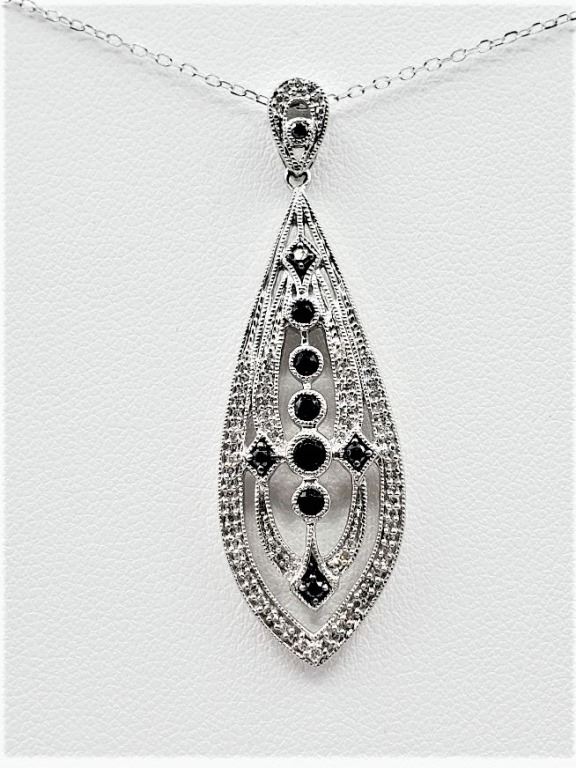 STERLING SILVER BLACK & WHITE DIAMOND PENDANT WITH STERLING CHAIN, 94 DIAMONDS (0.45CTS), W/A $995.0