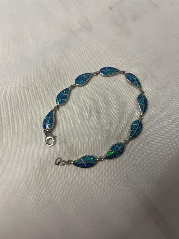 STERLING SILVER BRACELET W/ GENUINE OPAL STONES INLAID MARKED 925, 8" LENGTH