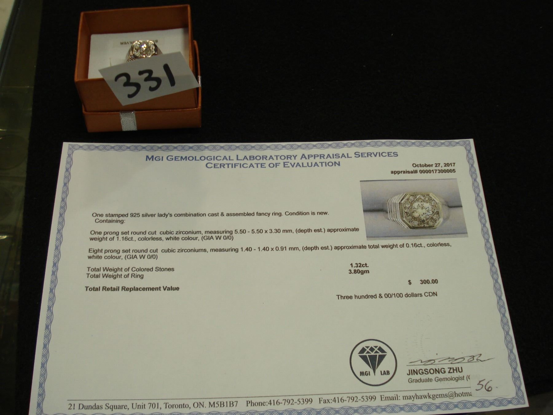STERLING SILVER CUBIC ZIRCONIA COCKTAIL RING WITH APPRAISEL $300.00