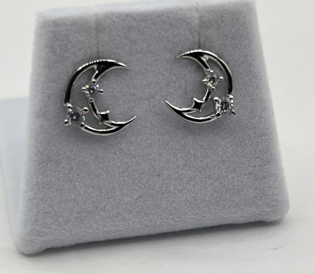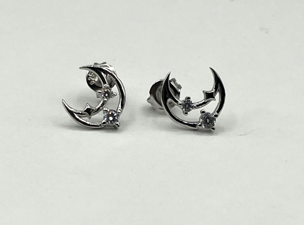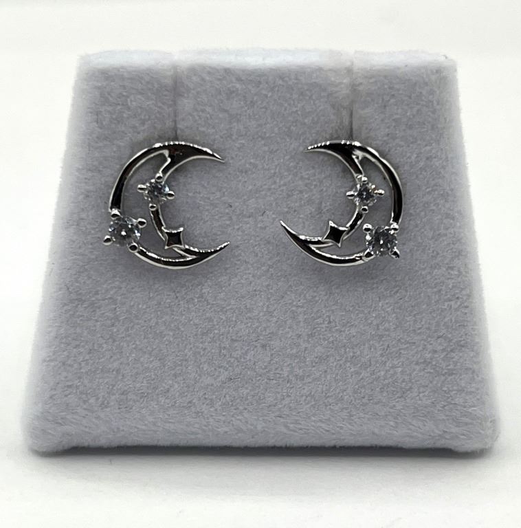 STERLING SILVER CZ CRESENT MOON EARRING, RETAIL $150.00.