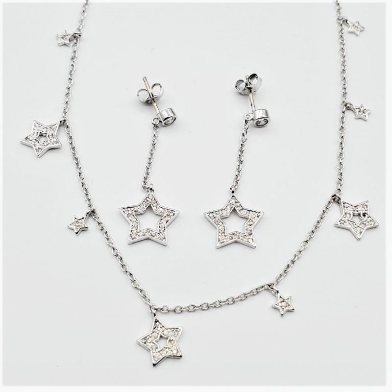 STERLING SILVER CZ NECKLACE & EARRINGS, W/A $615.00