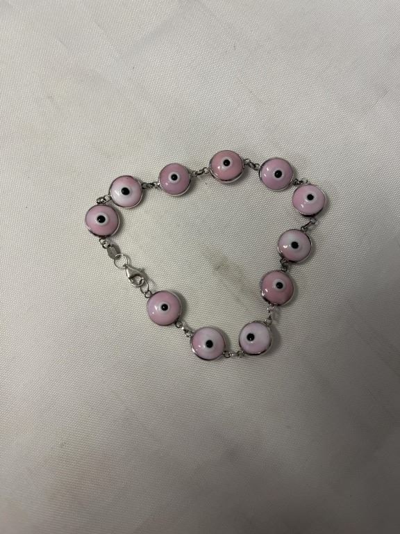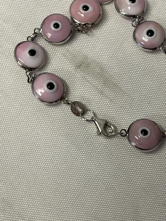STERLING SILVER DEVILS EYE LINKS BRACELET 7" LENGTH MARKED 925