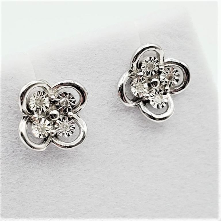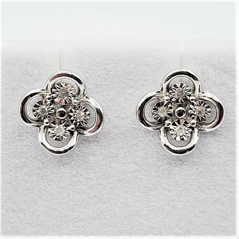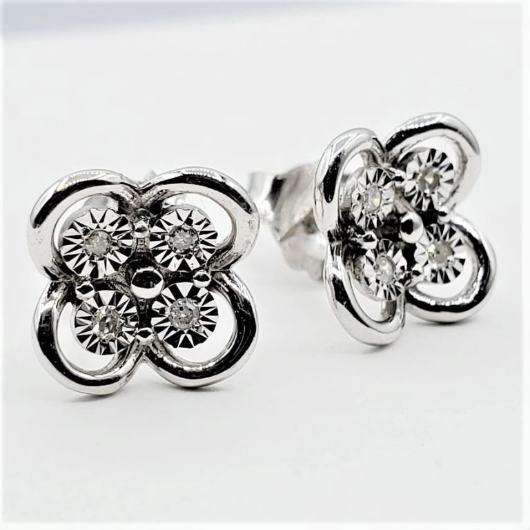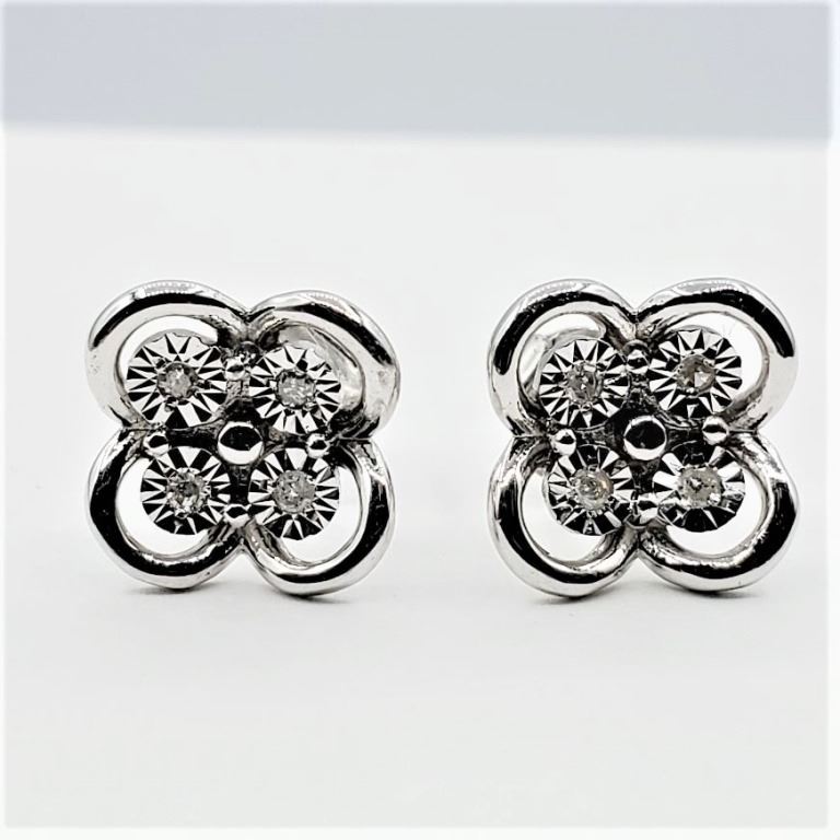 STERLING SILVER DIAMOND EARRINGS, 8 DIAMONDS (0.05CTS), W/A $600.00