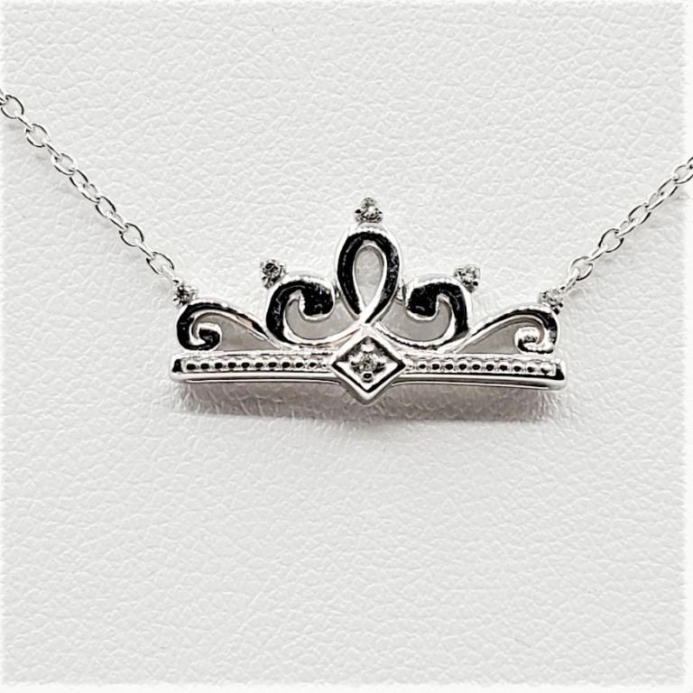 STERLING SILVER DIAMOND "PRINCESS TIARA" NECKLACE, 6 DIAMONDS (0.03CTS), W/A $615.00