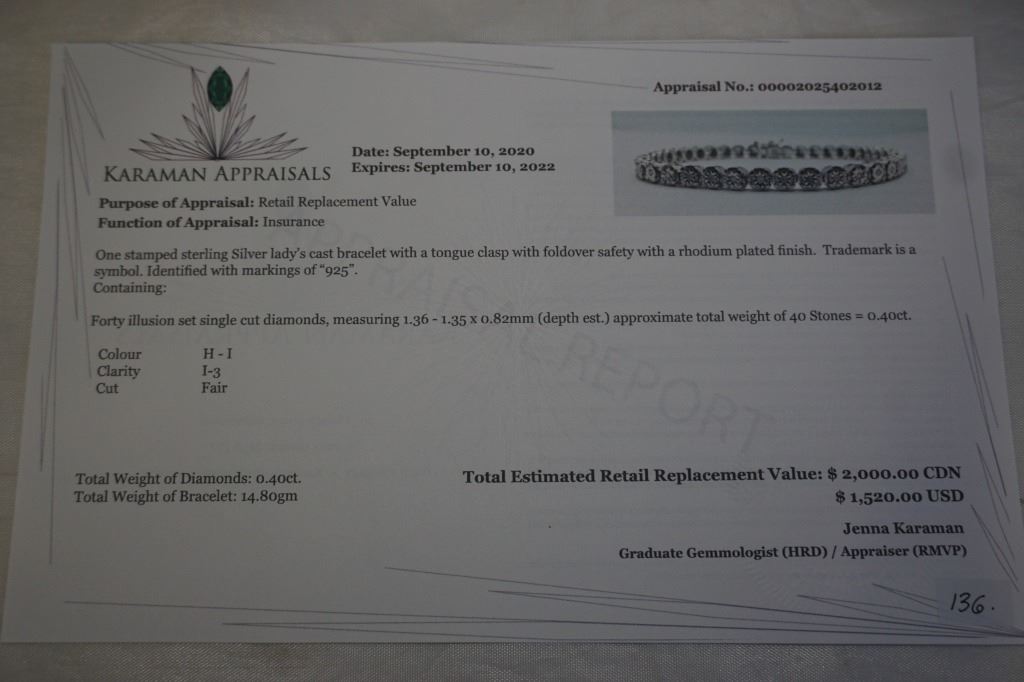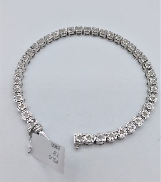 STERLING SILVER DIAMOND TENNIS BRACELET W/ APPRAISAL $2000 - 40 DIAMONDS (0.4CTS)